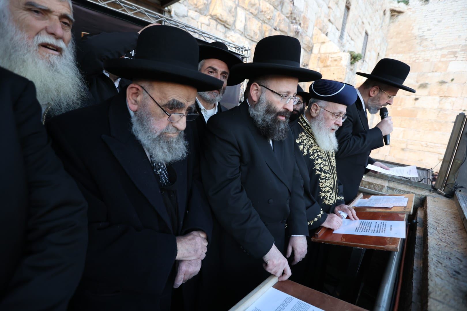 בעצרת התפילה הענקית השתתפו הרבנים הראשיים לישראל, הראשון לציון הגאון רבי יצחק יוסף שליט"א, הגאון רבי דוד לאו שליט"א, רב הכותל הגר"ש רבינוביץ' לצד רבני ערים, רבני ישובים, ראשי ישיבות ורבנים אשר זעקו לפני בעל הרחמים במקום שריד בית מקדשנו, למען שובם המהיר של 136 החטופים הנתונים בשבי האויב המר לביתם ולחיק משפחתם.