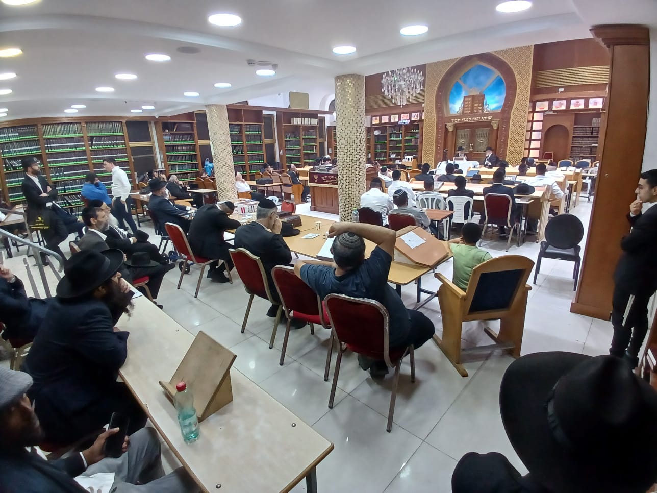 תוך זמן קצר בית הכנסת התמלא כך גם באולם הסמוך. לאחר תפילת ערבית הספידוהו מרנן ורבנן הרבנים הגאונים: הגאון ר' יעקב זר שליט"א אב"ד בד"ץ "חרדים" וראש כולל "משפטי עליון" ב"ב ומתלמידיו של ראש הישיבה זצ"ל, שהגיע ברגע האחרון עקב היעדרותו של הגאון רבי חיים רבי ר"י "עטרת חכמים" שנבצר ממנו להשתתף בעצרת, הגאון הגדול רבי צמח מאזוז שליט"א ראש ישיבת "כסא רחמים" אחיו של ראש הישיבה זצ"ל.