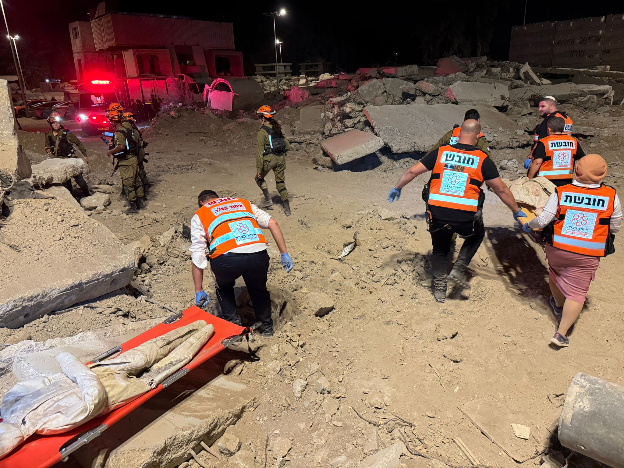מתנדבי איחוד ההצלה תרגלו טיפול ופינוי נפגעים באתר המדמה זירת הרס עם קריסה ונזק כבד למבנה עם לכודים ופצועים, לאחר חילוץ הנפגעים על ידי יחידת החילוץ של פיקוד העורף