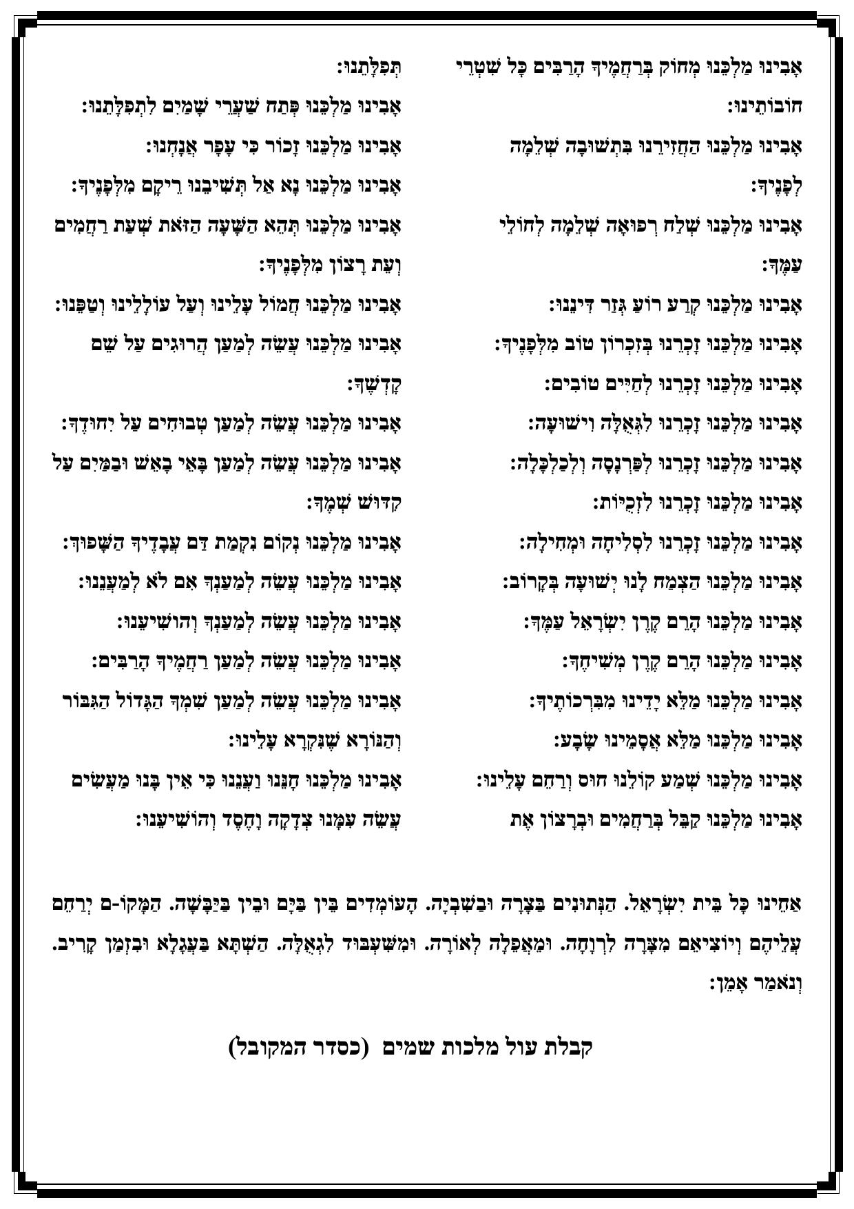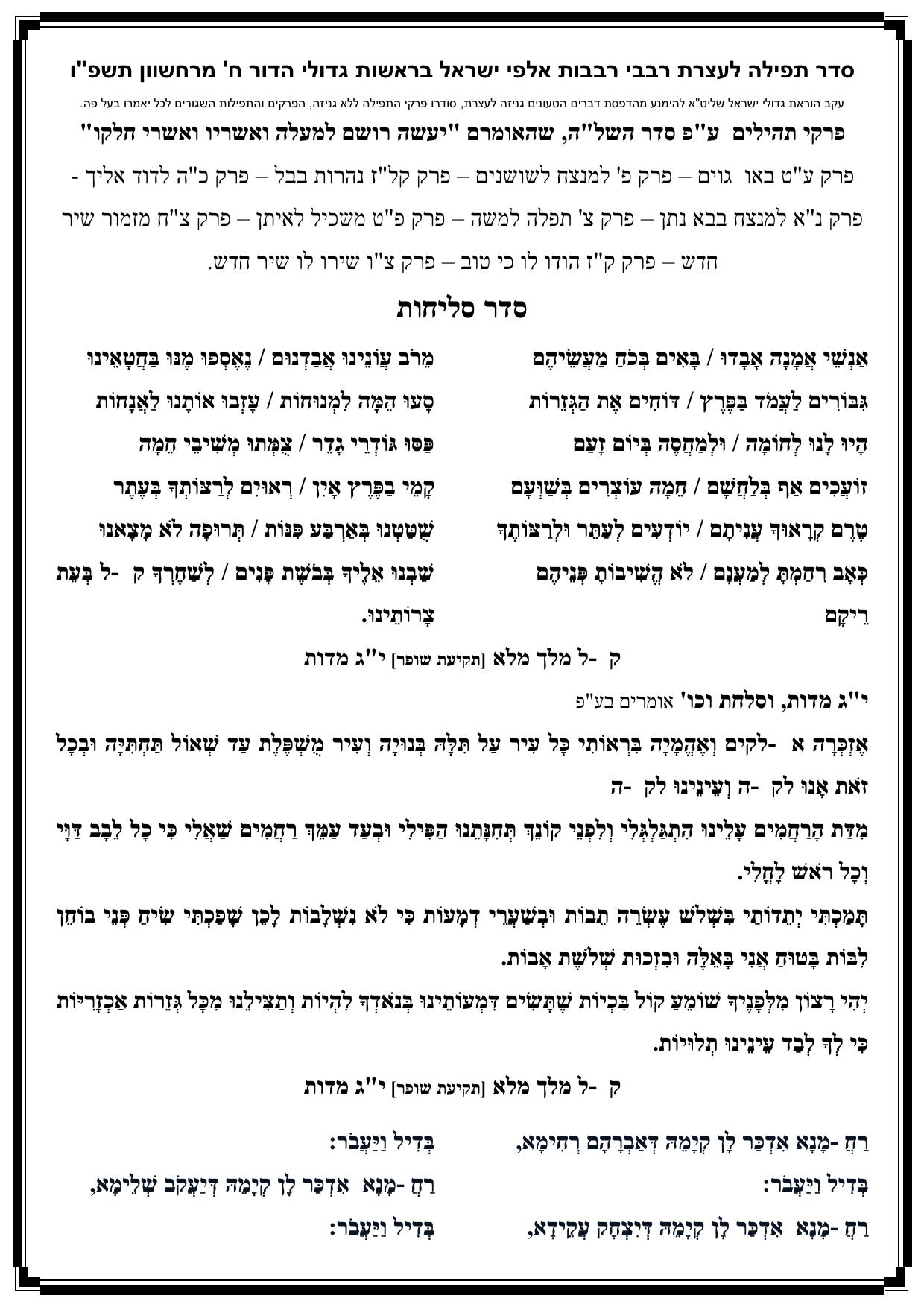 לא ימאס תפילת רבים: בעצרת המיליון שתתקיים היום (ה) בירושלים יאמר סדר תפילה מיוחד שמצורף כאן לנוחותכם. בנוסף, קוראים מארגני העצרת למשתתפים הרבים להצטייד בספרי תהלים וכן בשופרות.