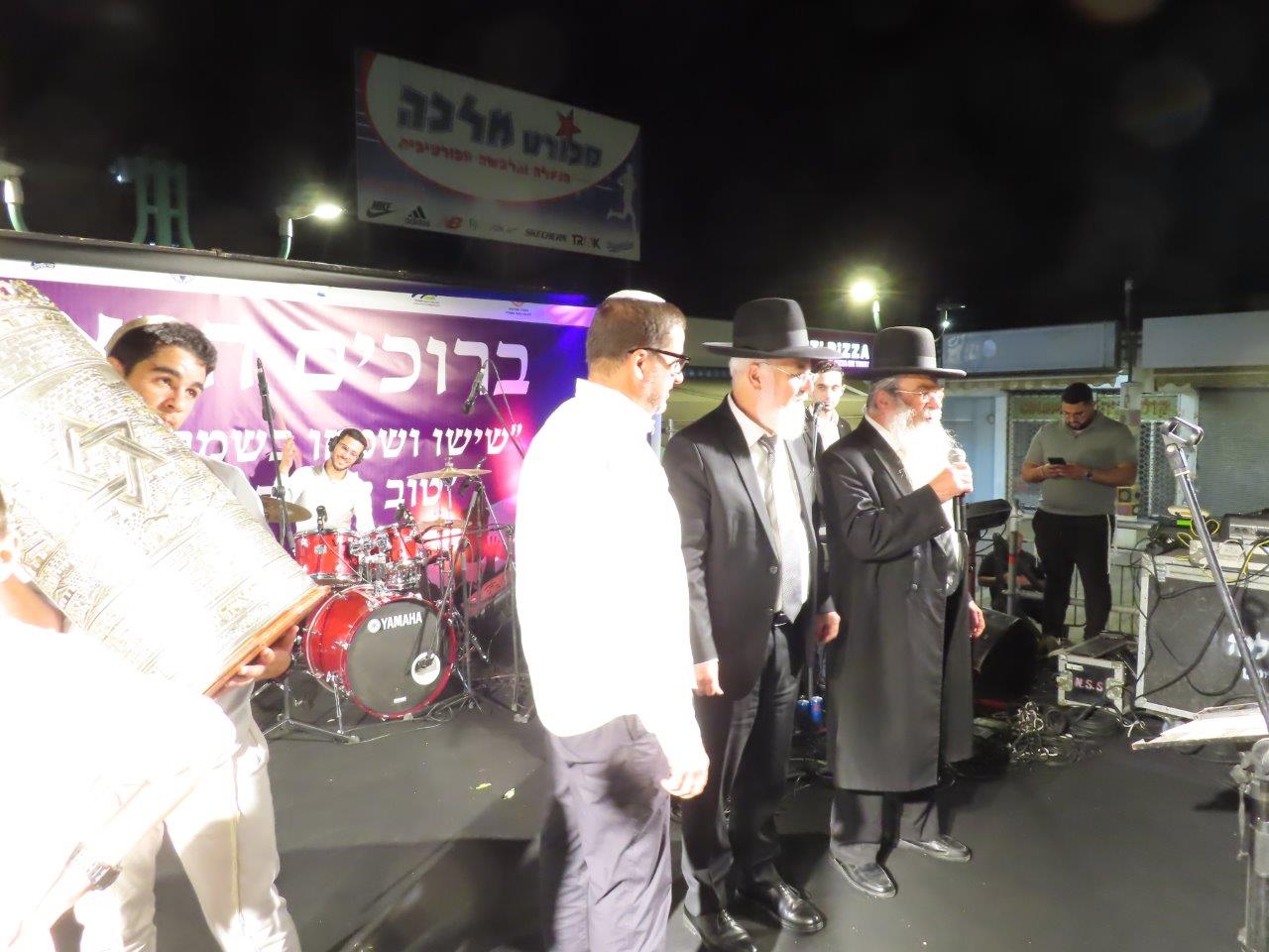 למקום הגיעו ונשאו דברי ברכה הרב עובדיה דהן הי"ו – יו"ר המועצה הדתית והרה"ג ר' חיים קלמנוביץ חבר לשכת הרה"ר ורב מחלקת העירובין. כמו כן כובדו יחד לערוך את ההקפה הראשונה.