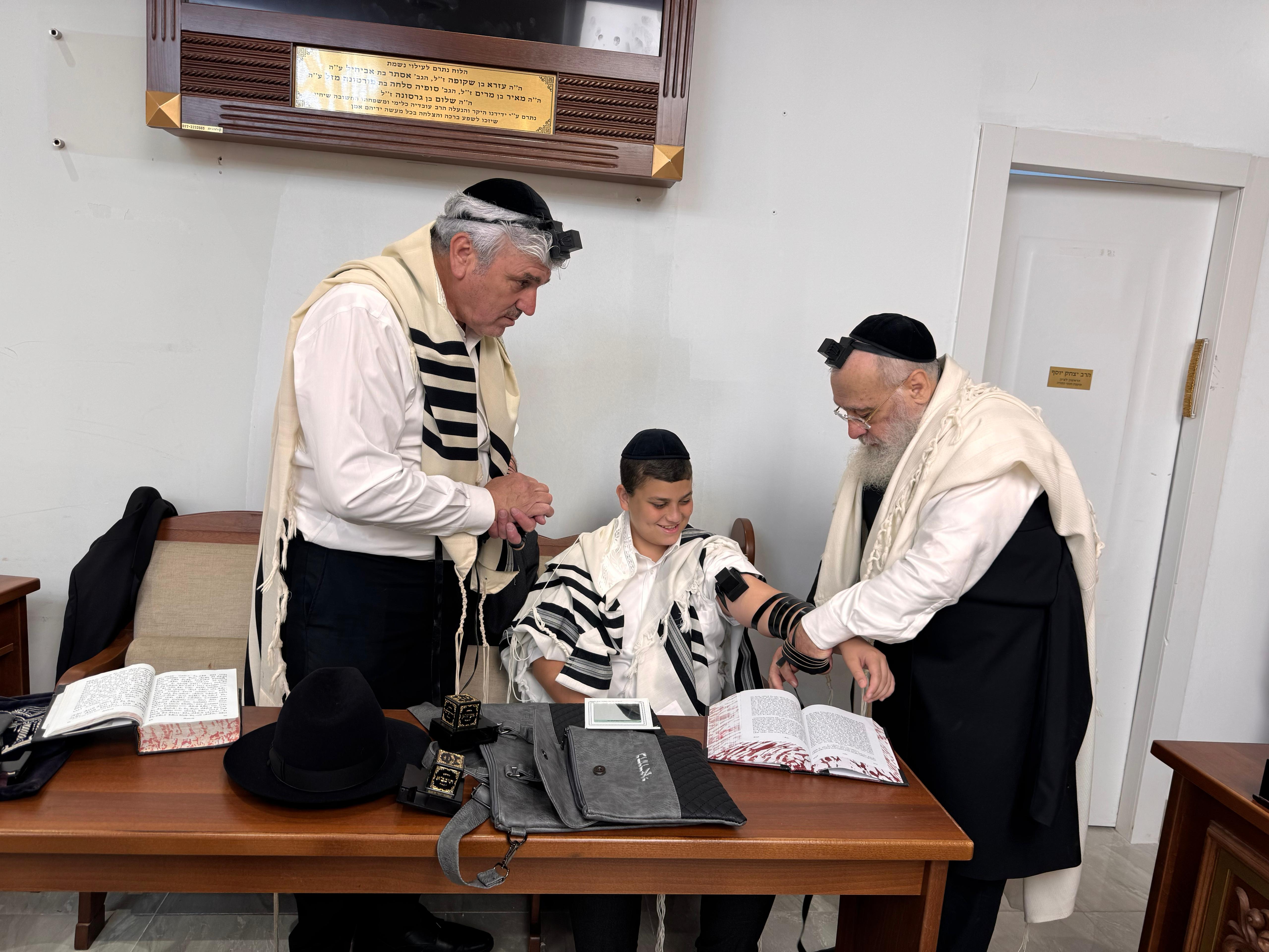 לרגל שמחת בר המצווה: בן הממ"ק ויו"ר ש"ס באשדוד הניח תפילין אצל הראשל"צ