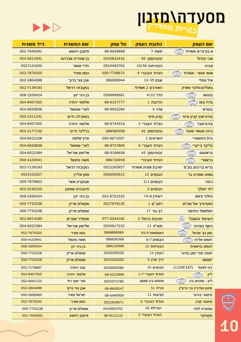 עם החזרה לשגרה מפרסם 'אשדודס' כשירות לציבור באשדוד את החוברת 'כשר לטייל באשדוד' מבית המועצה הדתית באשדוד בראשותו של הרב עובדיה דהן. מחפשים קונדטוריה כשרה באשדוד? מסעדה כשרה טובה? כל הפרטים בפנים