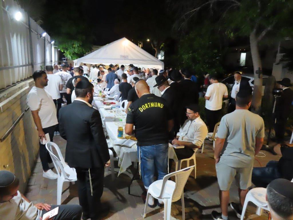 סעודת המצוה נערכה בזריזות עם דברי תורה קצרים שהשמיע מזכה הרבים הרה"ג ר' יוסף כהן שליט"א מחבר ספרים רבים חשובים בהלכה.