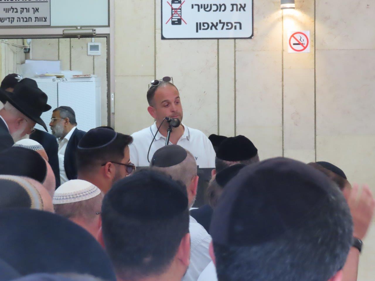 את מסכת ההספדים חתם בנו שלום הי"ו, אשר נפרד מאביו בקול בוכים וסיפר על היושר והאמת של אביו ז"ל, על מידת הענווה שבו, כמה דאג לאחרים, כמה אהבו את אבא ז"ל ובע"ה נמשיך בדרכו, בשם המשפחה ביקש בקשת מחילה.