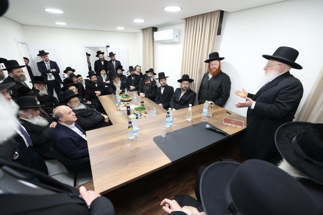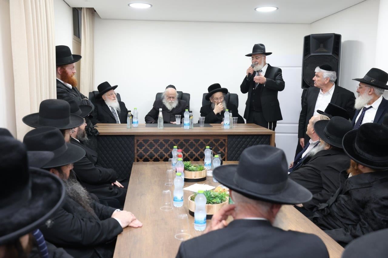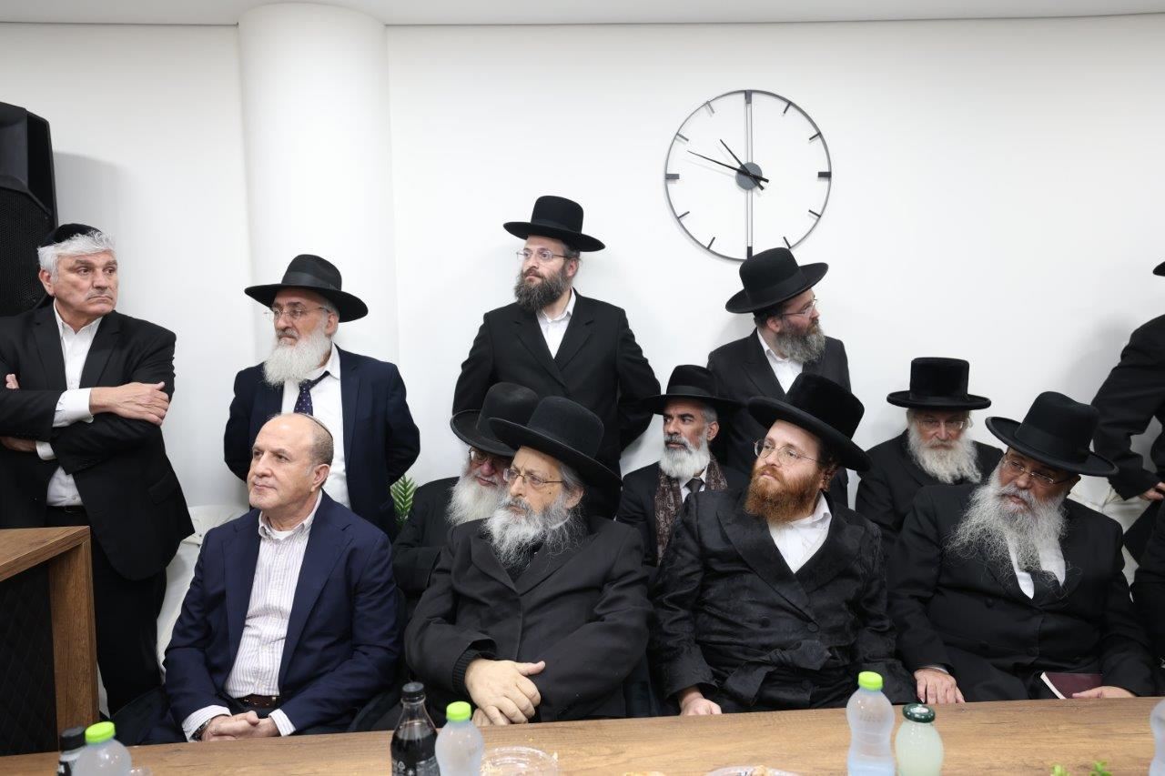 המרא דאתרא הגר"ח פינטו, חברי בד"ץ רבני הקריות הדיינים, מורי ההוראות ואחמי"ם התאספו באולם הרחב שע"י בית הדין שם נשאו דברי ברכה לכבוד המעמד.