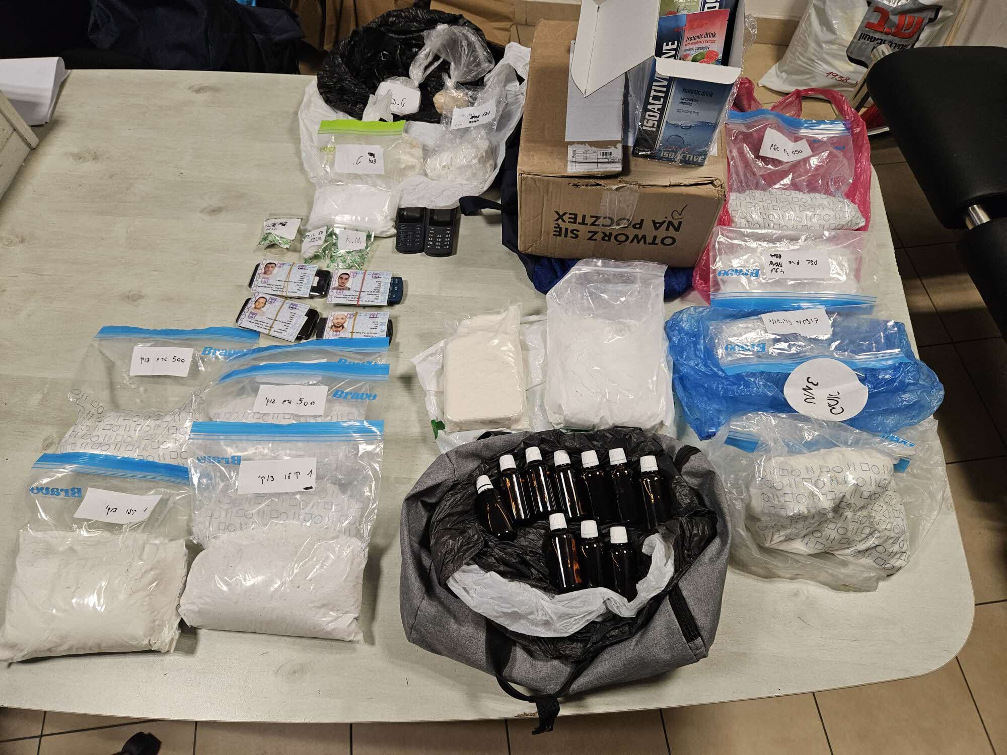 במהלך הפעילות נתפסו כ-8.5 קילוגרמים של חומרים החשודים כסמים, ביניהם חומר החשוד כסם מסוג קריסטל וחומרים נוספים.