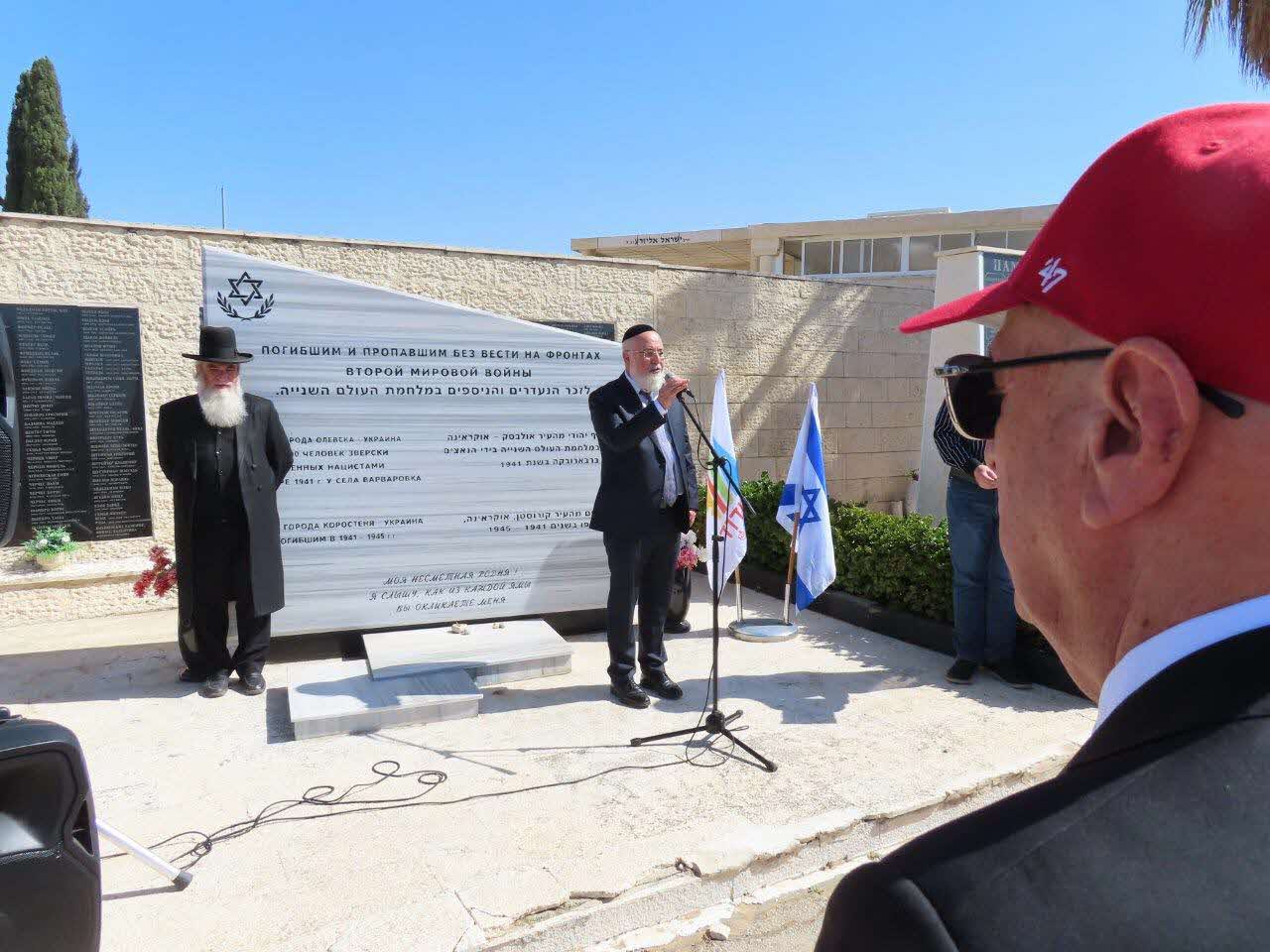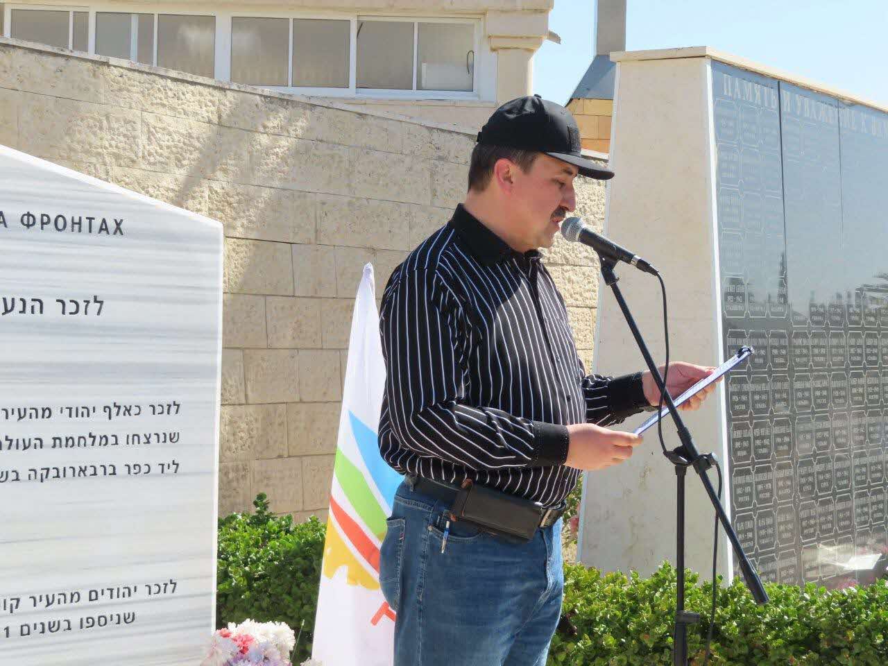 בטקס נשאו דברים סגן ראש העיר מר סניה כצנלסון כשבפתח דבריו קידם בברכה את הרב עובדיה דהן יו"ר המועצה הדתית המגיע לכבד מידי שנה בשנה כאן איתנו לזכור את קדושי השואה, הנעדרים והנספים במלחמת העולם השניה באוקראינה.
