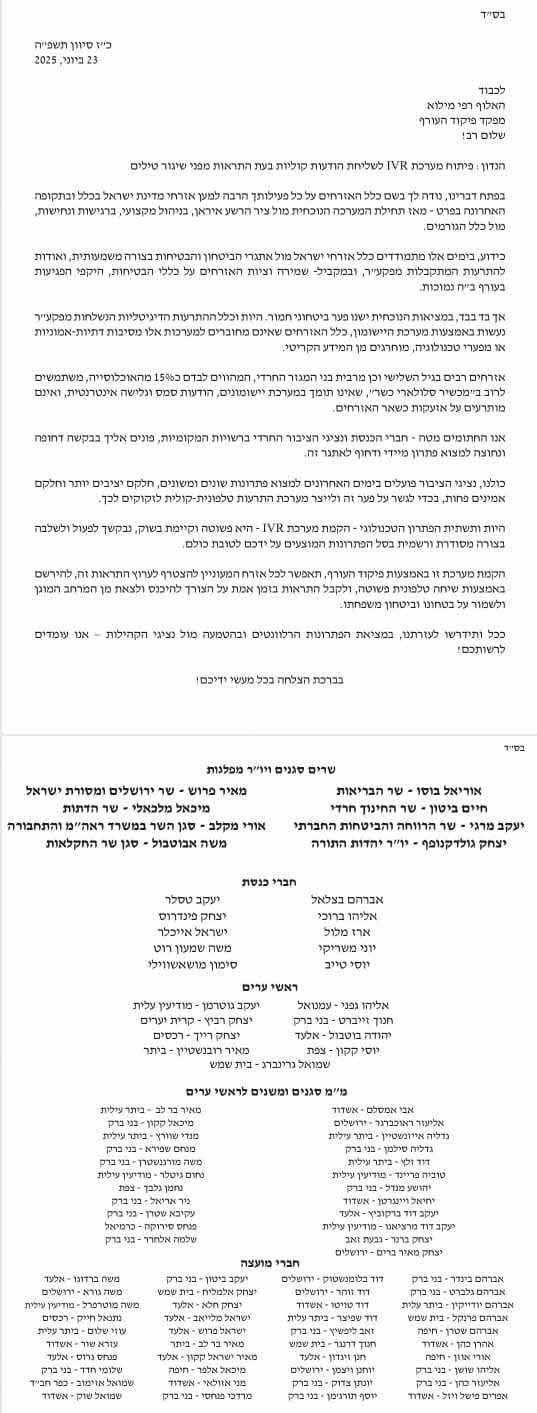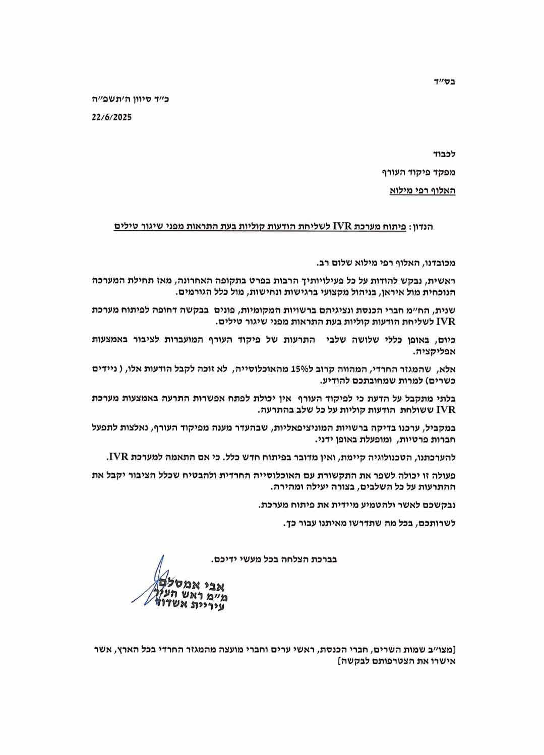 ממ"ק רה"ע אמסלם בפנייה משותפת לפיקוד העורף, לצד בכירי הנציגים החרדיים: הנגישו התרעות חירום לבעלי טלפונים כשרים