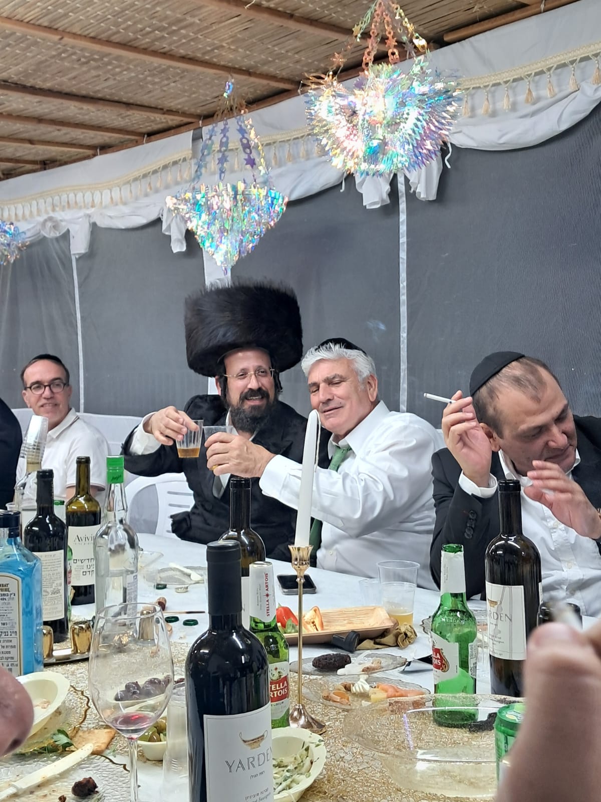יו"ר ש"ס ר' אבי אמסלם ערך כמנהגו סעודת חג בסוכתו רחבת הידיים, וראשי הסיעות החרדיות, 'אשדוד התורנית' ו'אגודת ישראל', הגיעו לברך