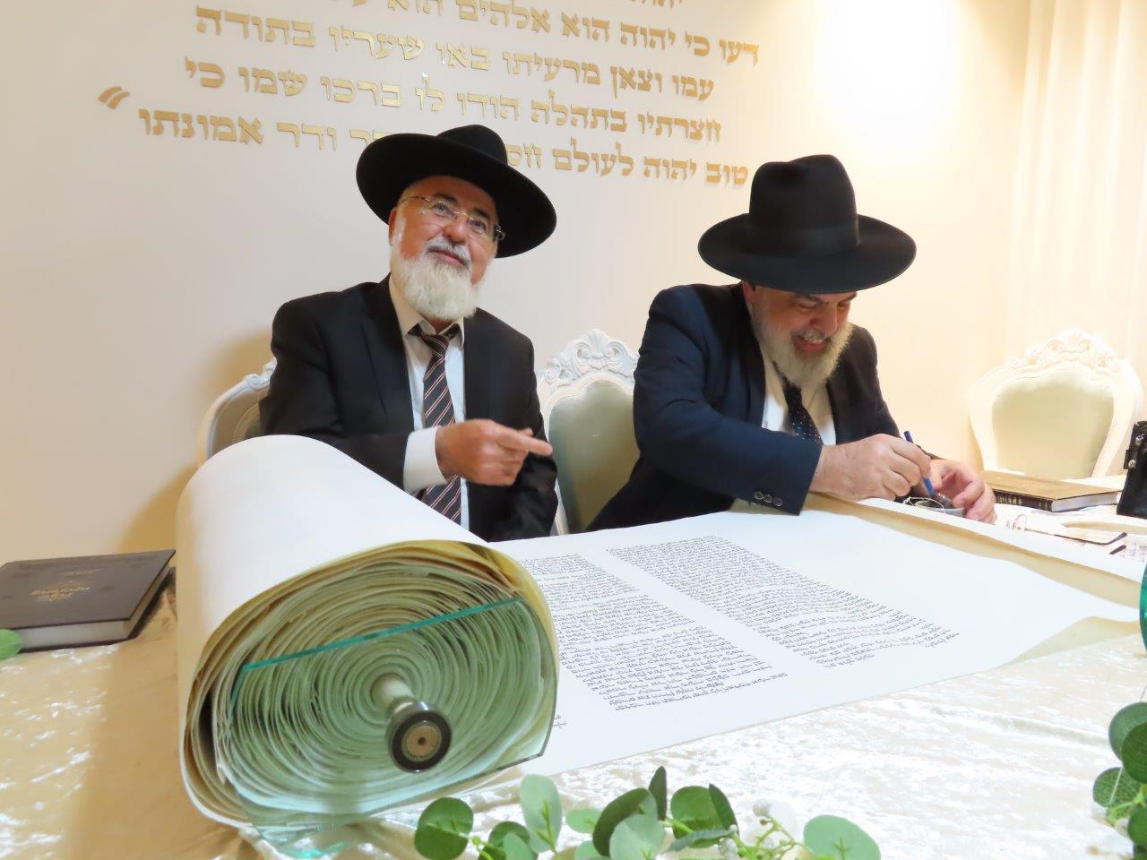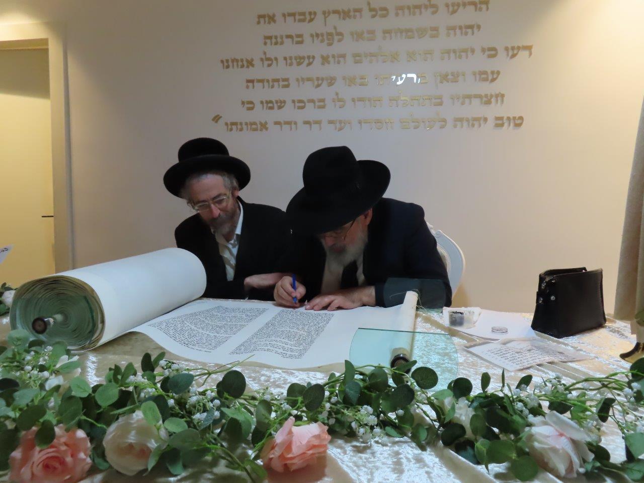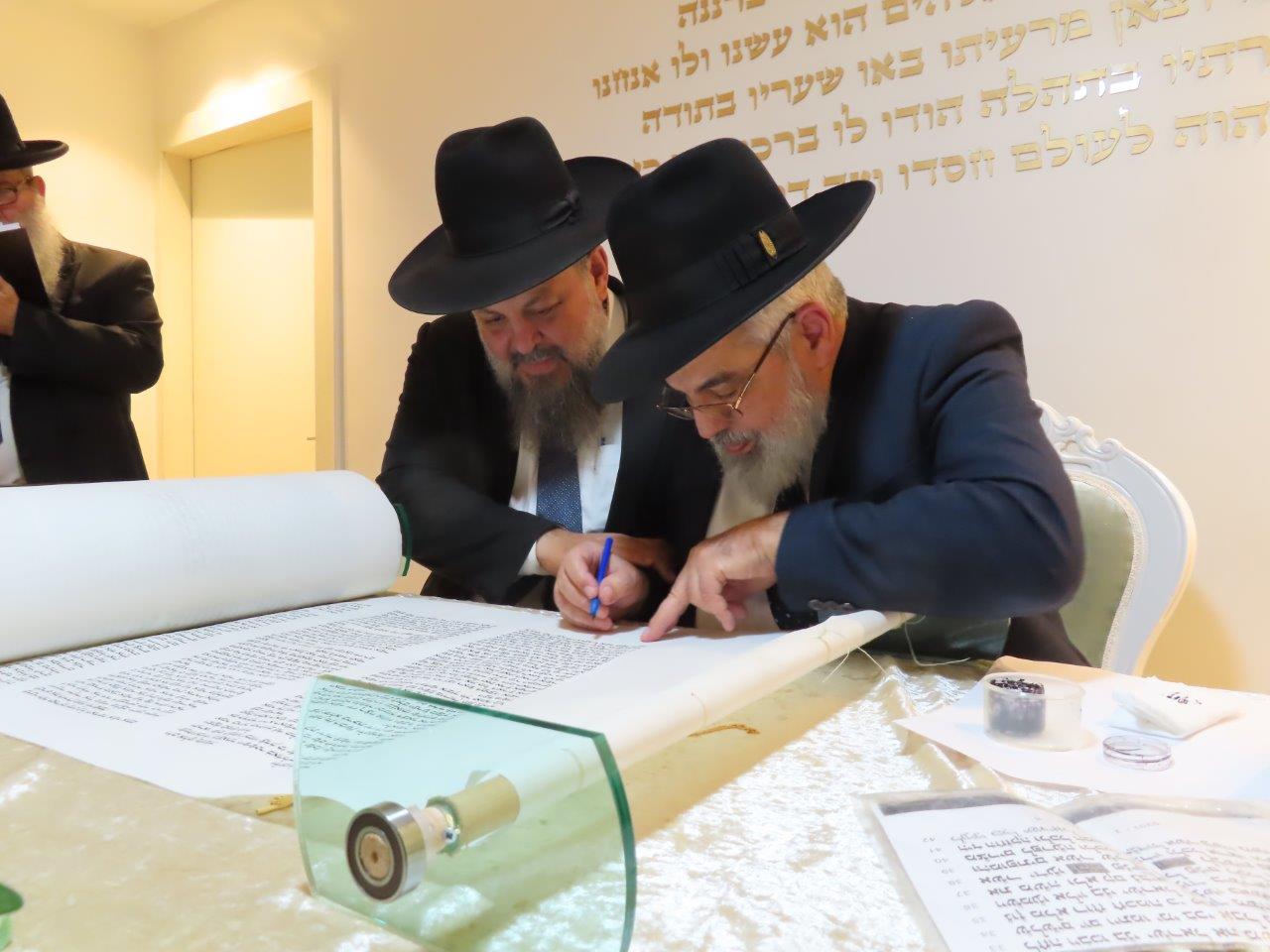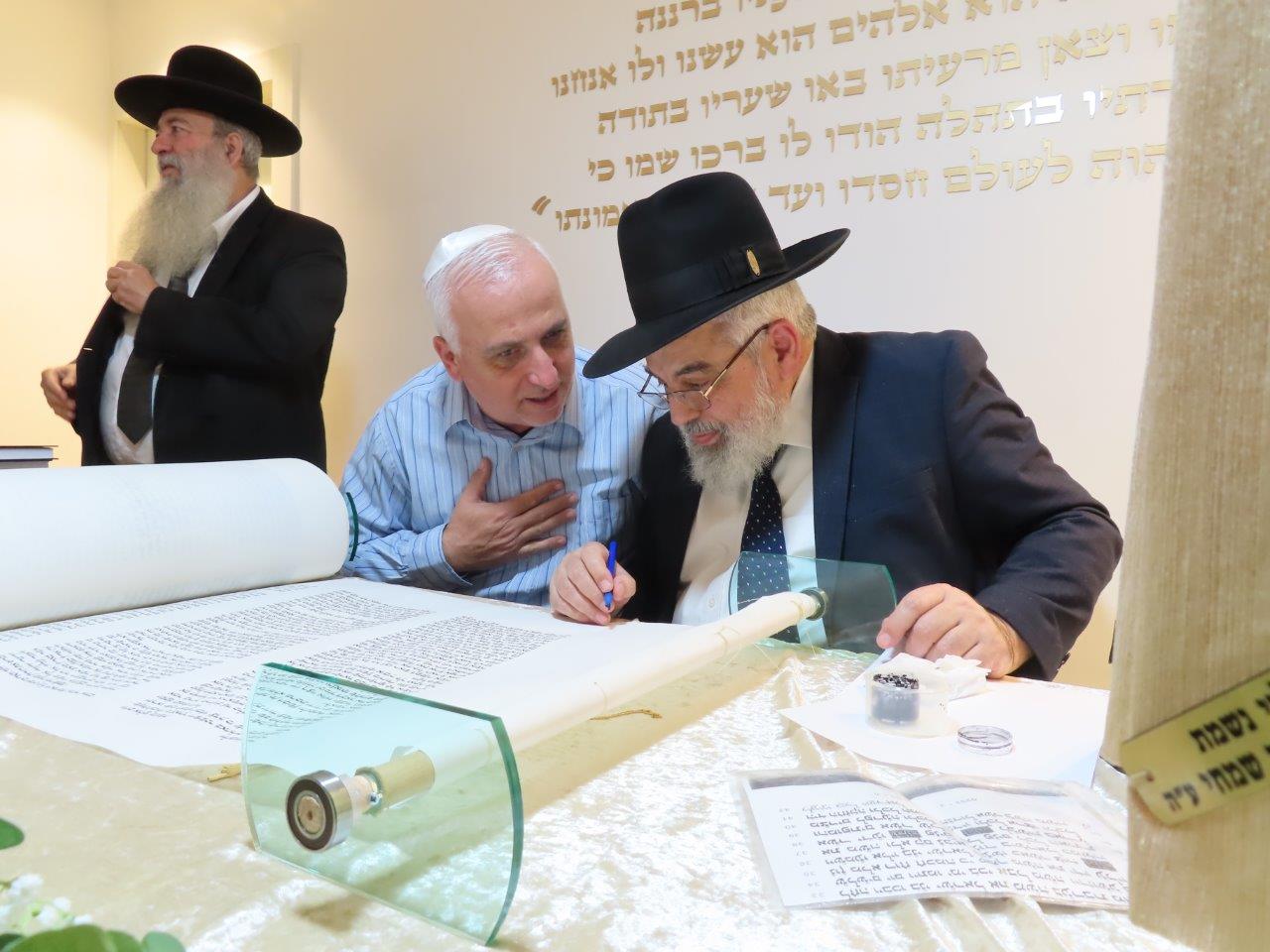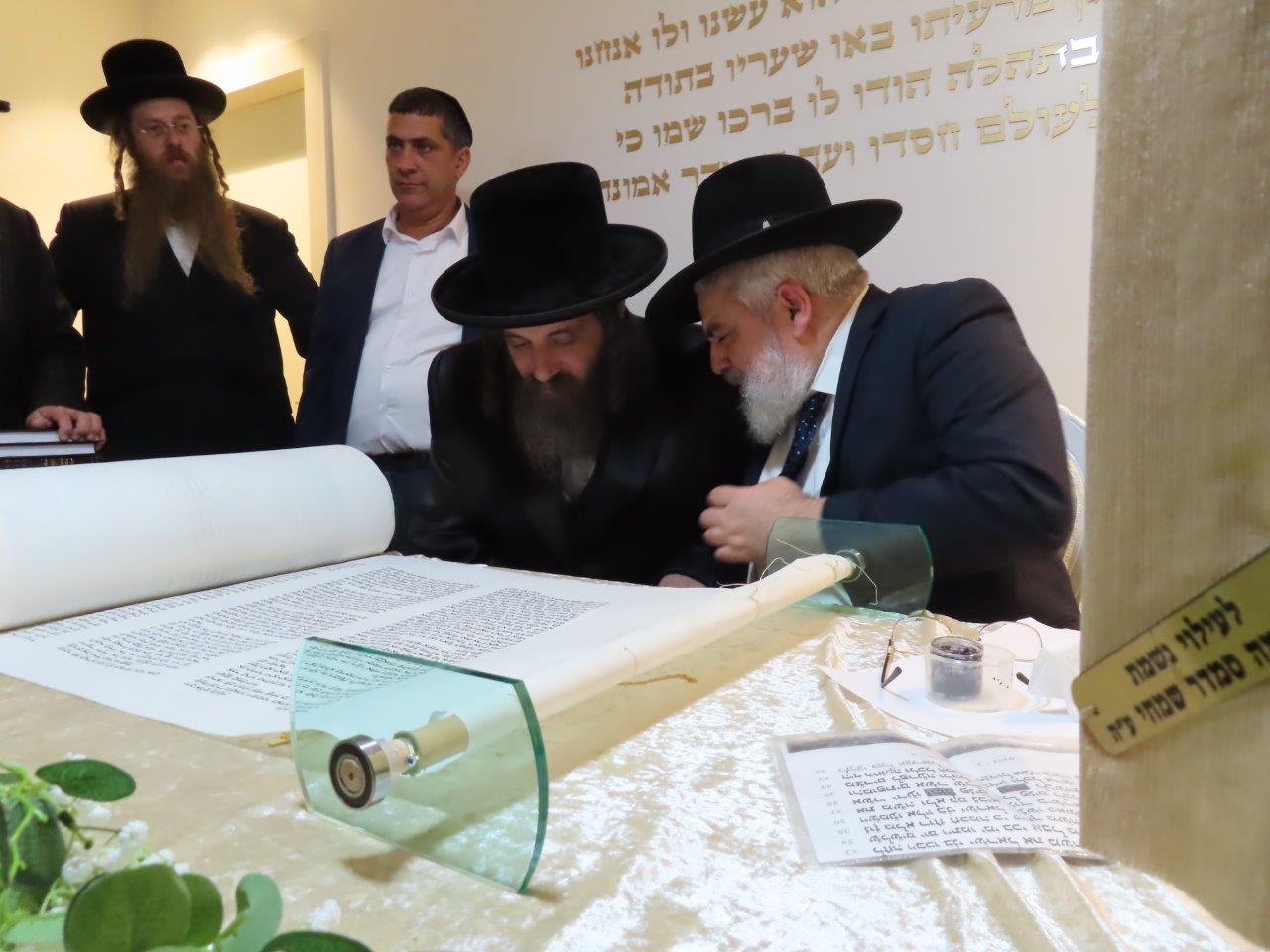 במשך כל זמן כתיבת האותיות, נכח הרה"ג ר' מכלוף עזריאל רב קהילה, ראש כולל "בני תורה" ורב בית הכנסת לשעבר. את האות האחרונה כתב וסיים בעלה ר' אורן שמחי הי"ו.