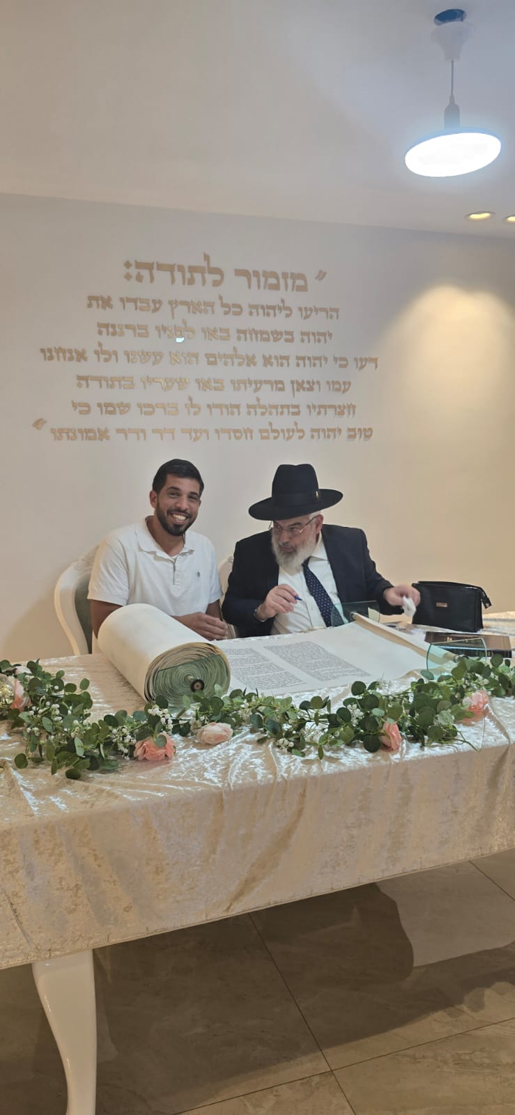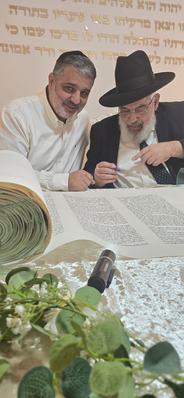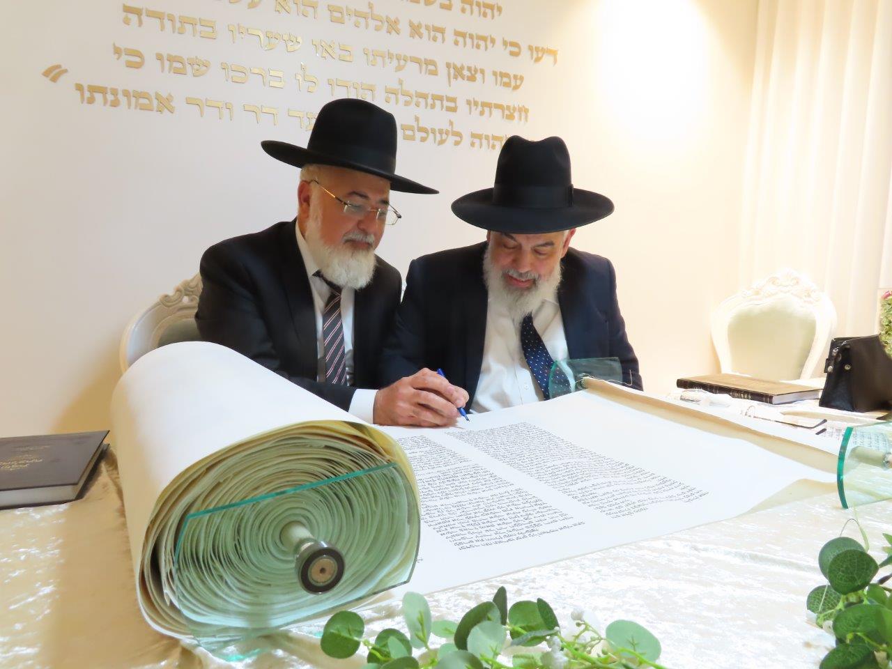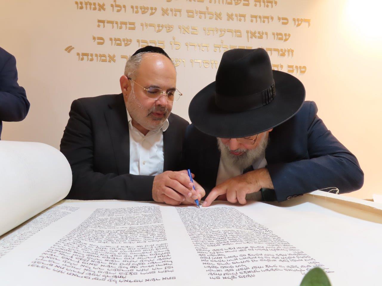 במשך כל זמן כתיבת האותיות, נכח הרה"ג ר' מכלוף עזריאל רב קהילה, ראש כולל "בני תורה" ורב בית הכנסת לשעבר. את האות האחרונה כתב וסיים בעלה ר' אורן שמחי הי"ו.