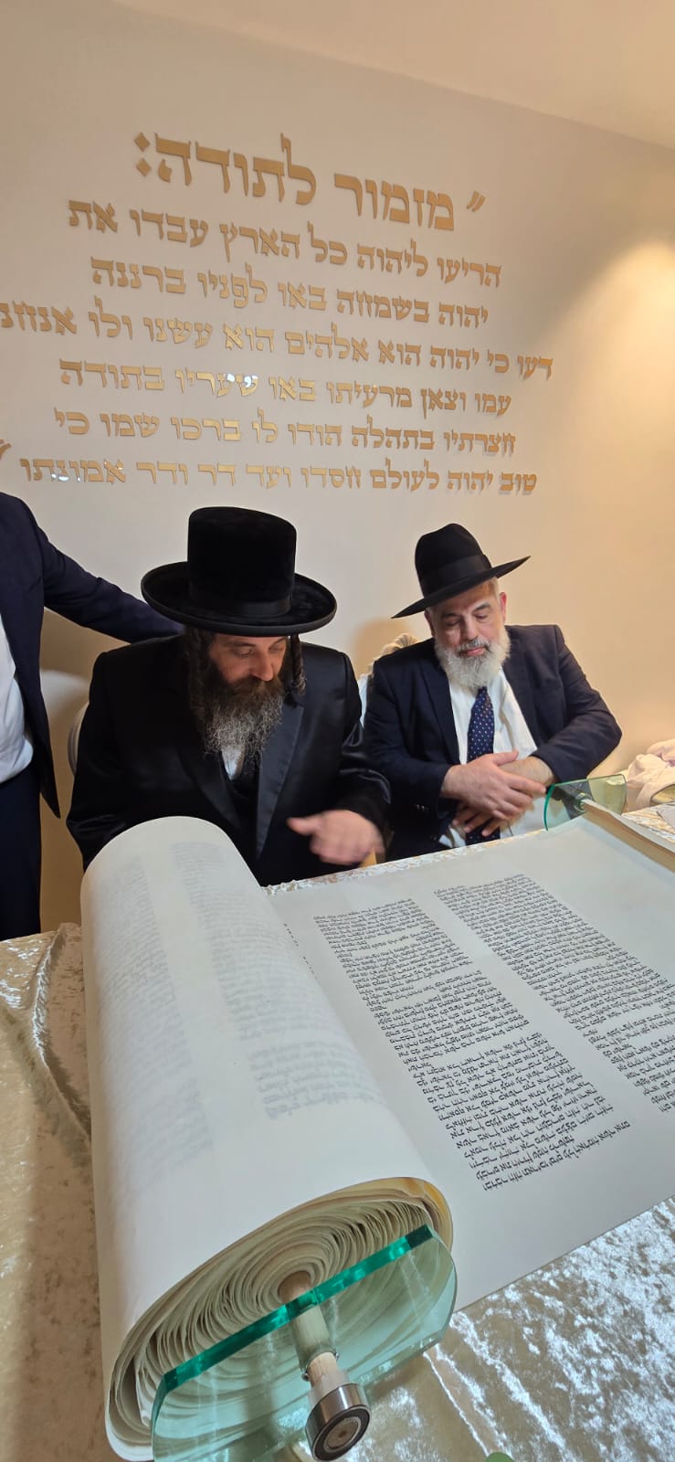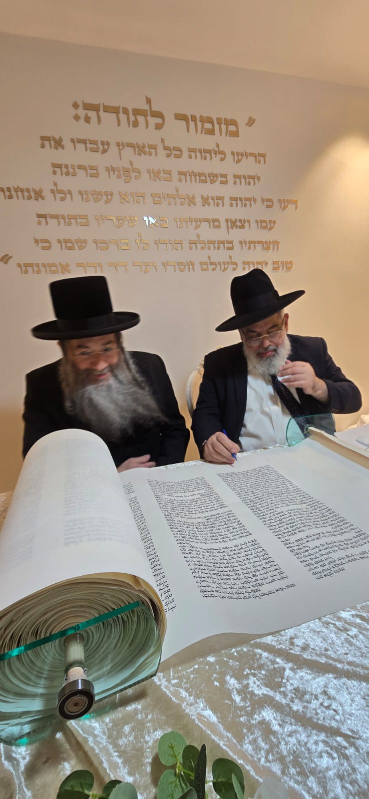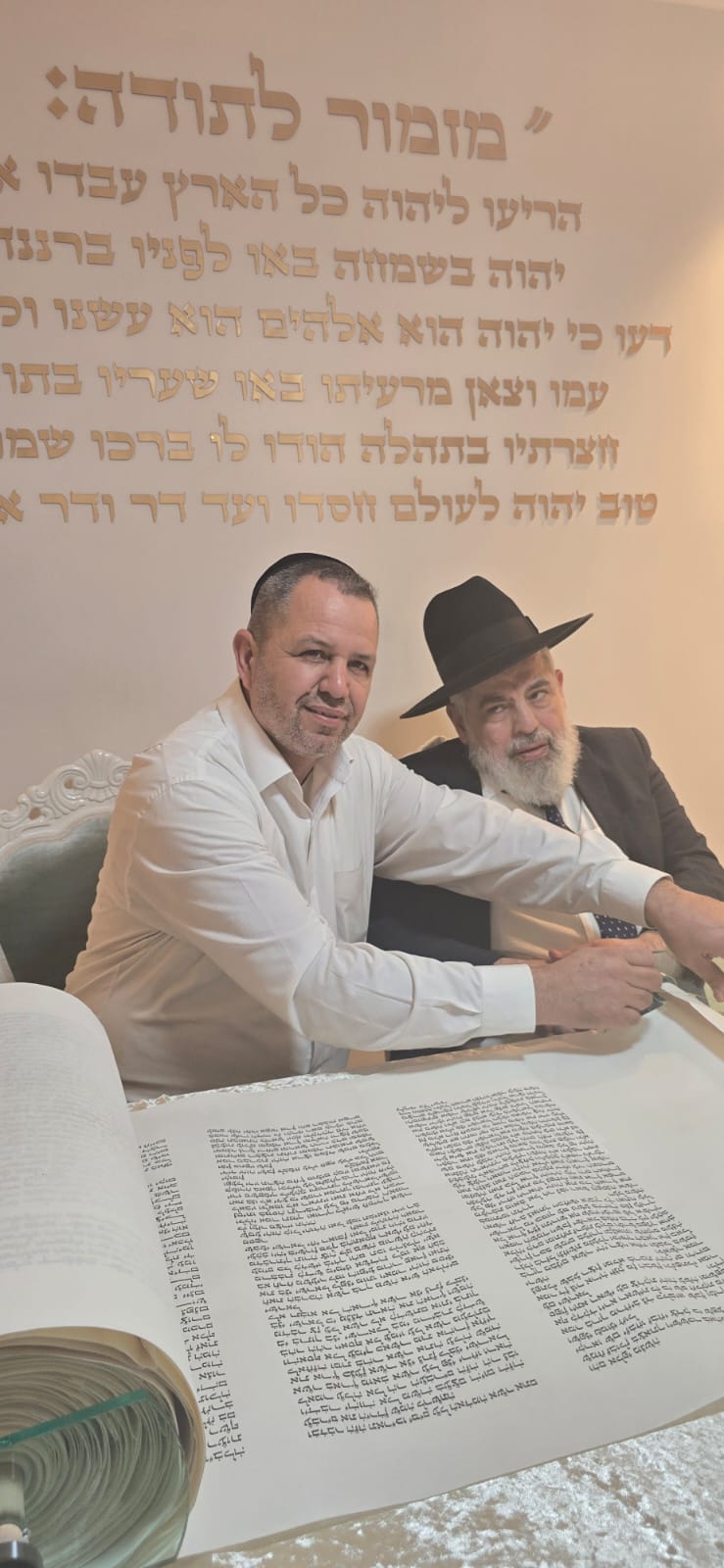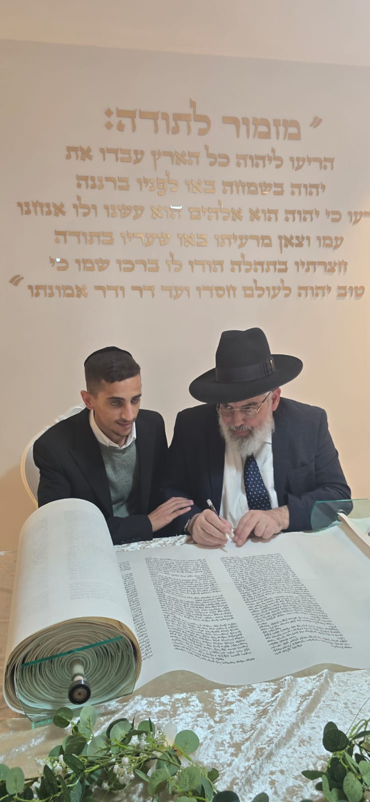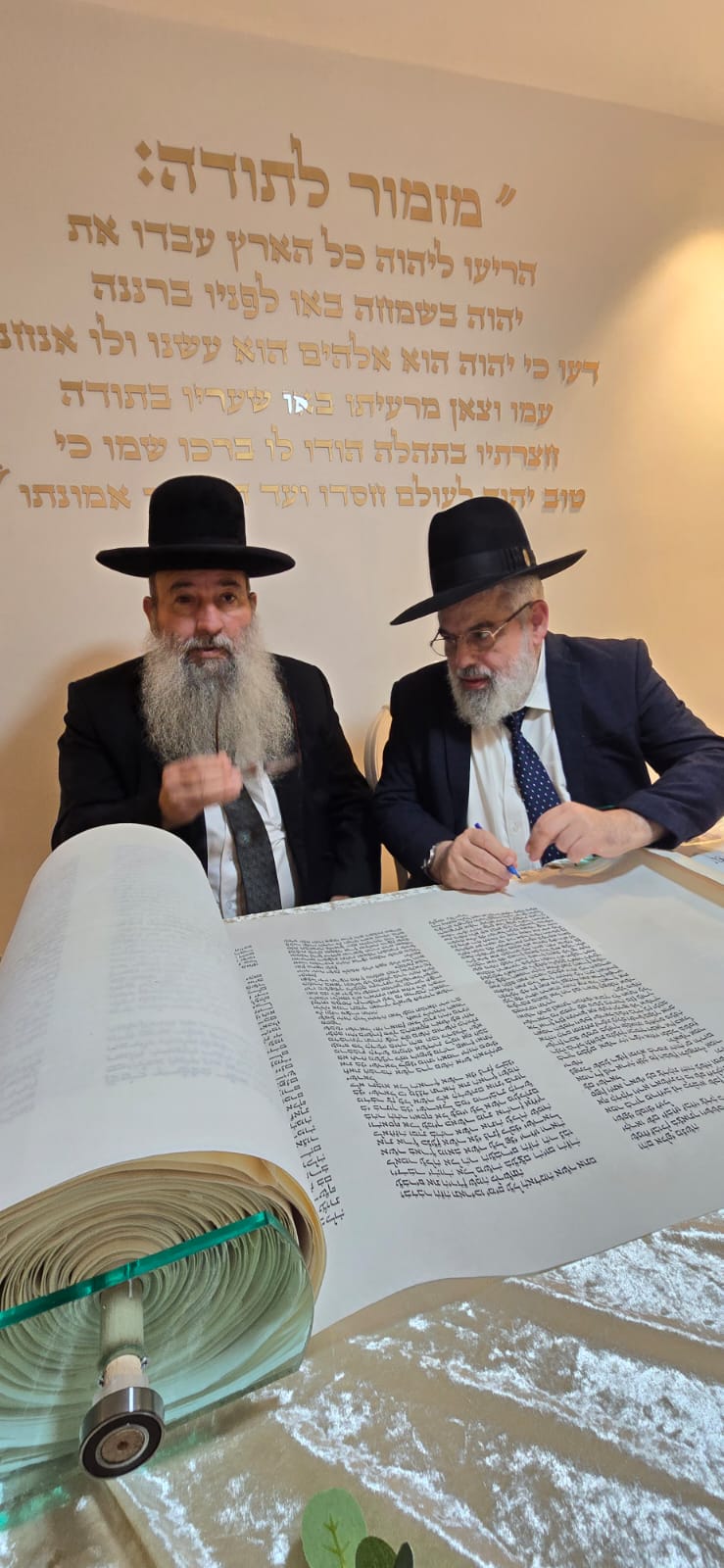 במשך כל זמן כתיבת האותיות, נכח הרה"ג ר' מכלוף עזריאל רב קהילה, ראש כולל "בני תורה" ורב בית הכנסת לשעבר. את האות האחרונה כתב וסיים בעלה ר' אורן שמחי הי"ו.