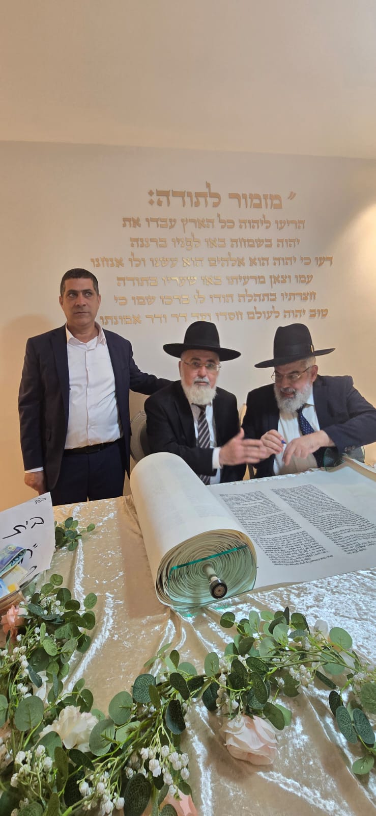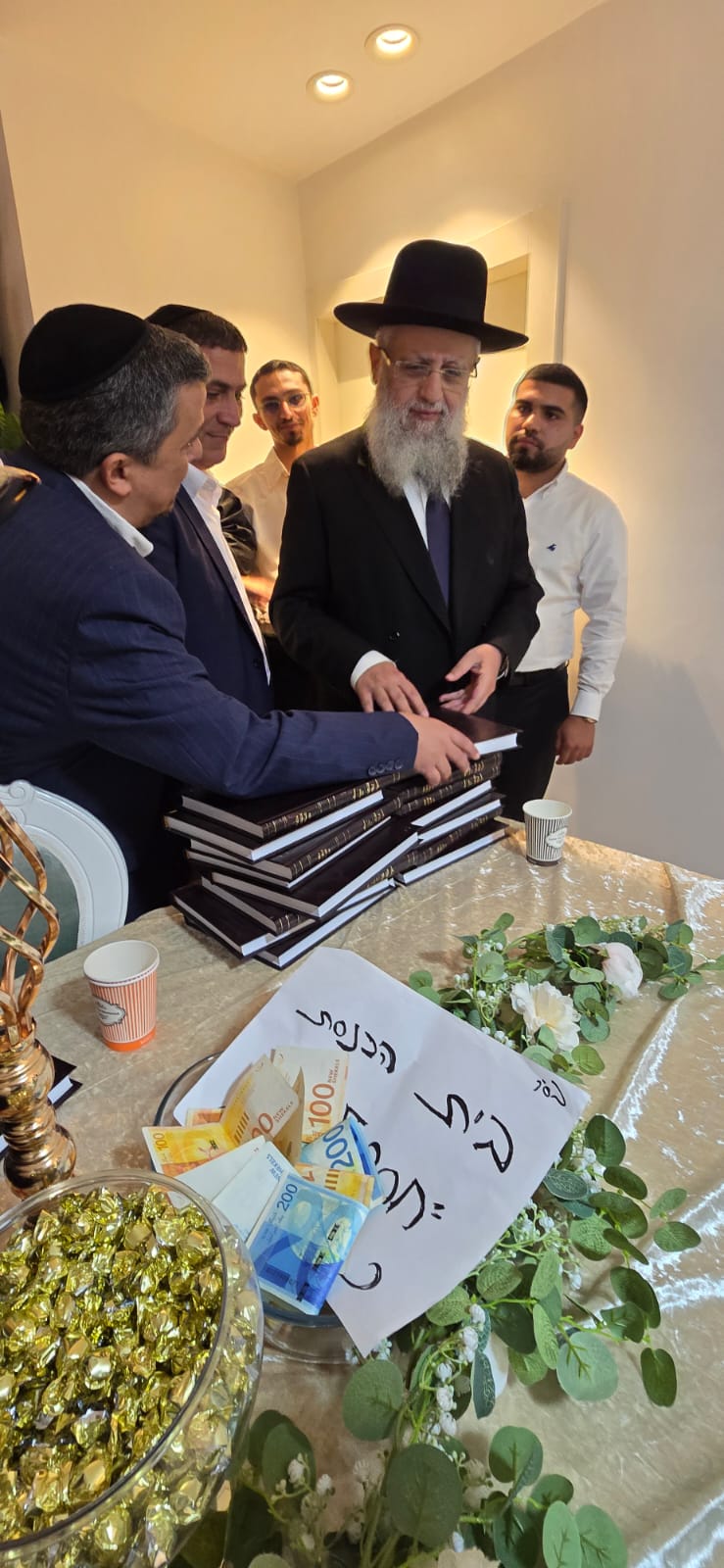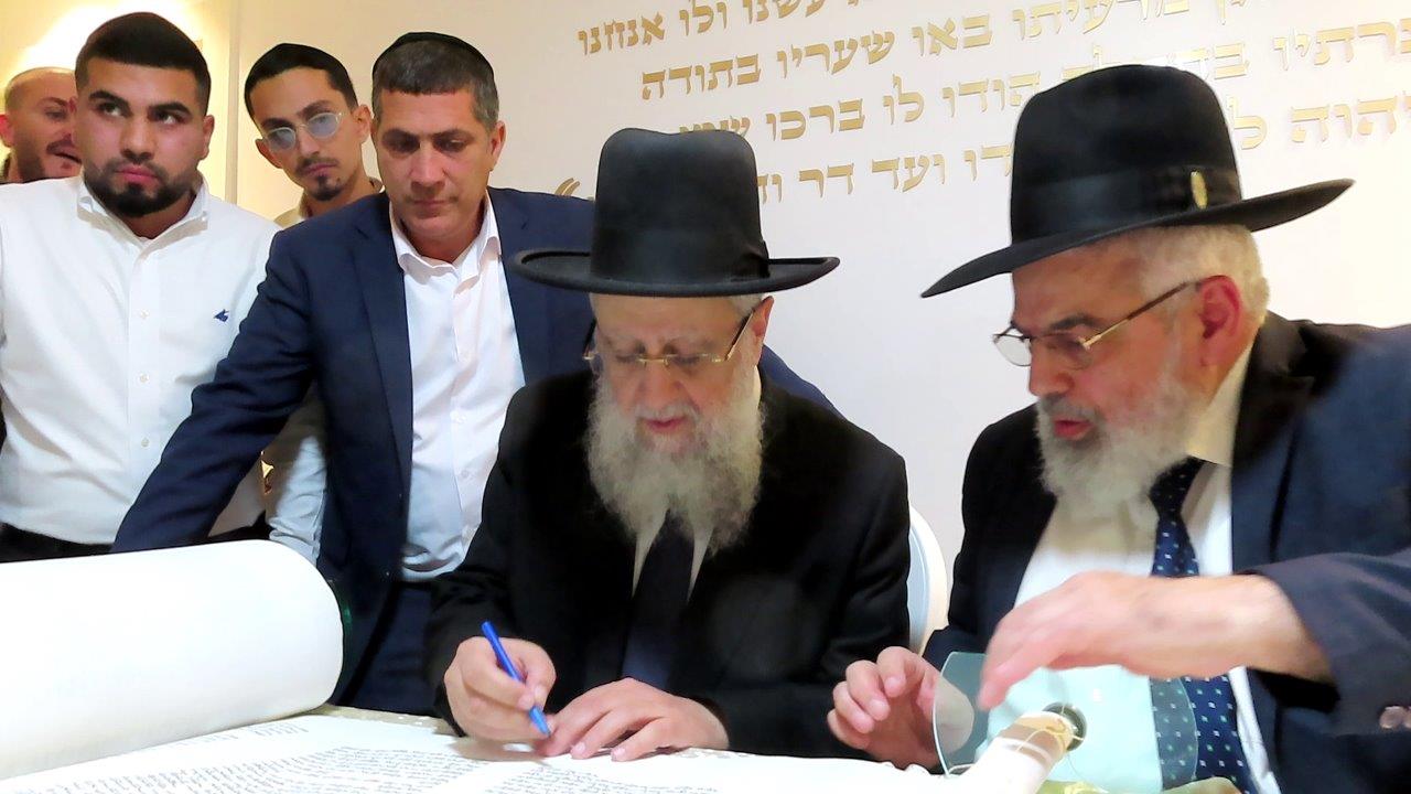 מעמד כתיבת האותיות התקיים בבית המשפחה ברובע ט', בהשתתפות רבנים חשובים, אדמור"ים ואישי ציבור ובראשם הראשון לציון הגאון רבי דוד יוסף שליט"א הרב הראשי לישראל.