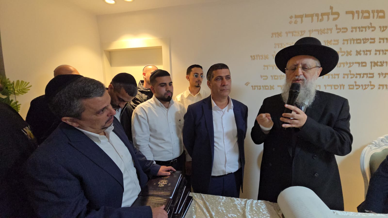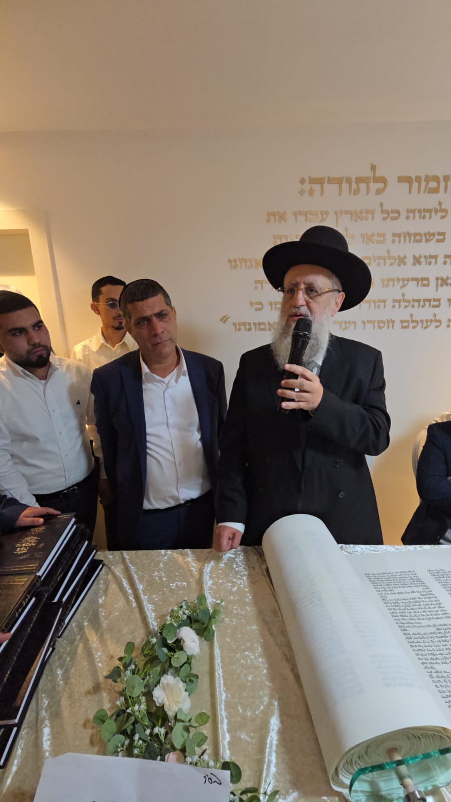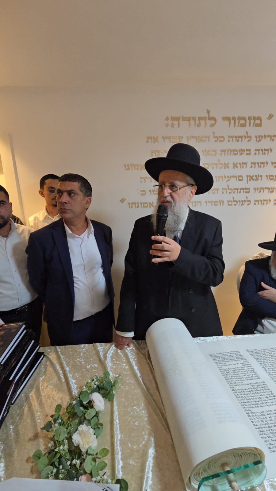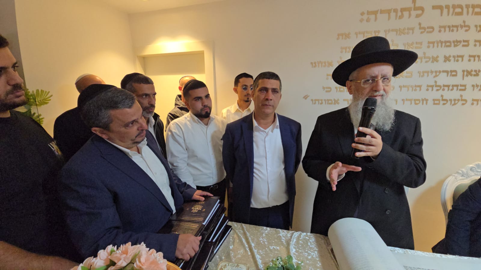 לאחר שכתב הראשון לציון הגר"ד יוסף את האות "ד" בספר התורה, נשא דברים נרגשים לכבוד המעמד.