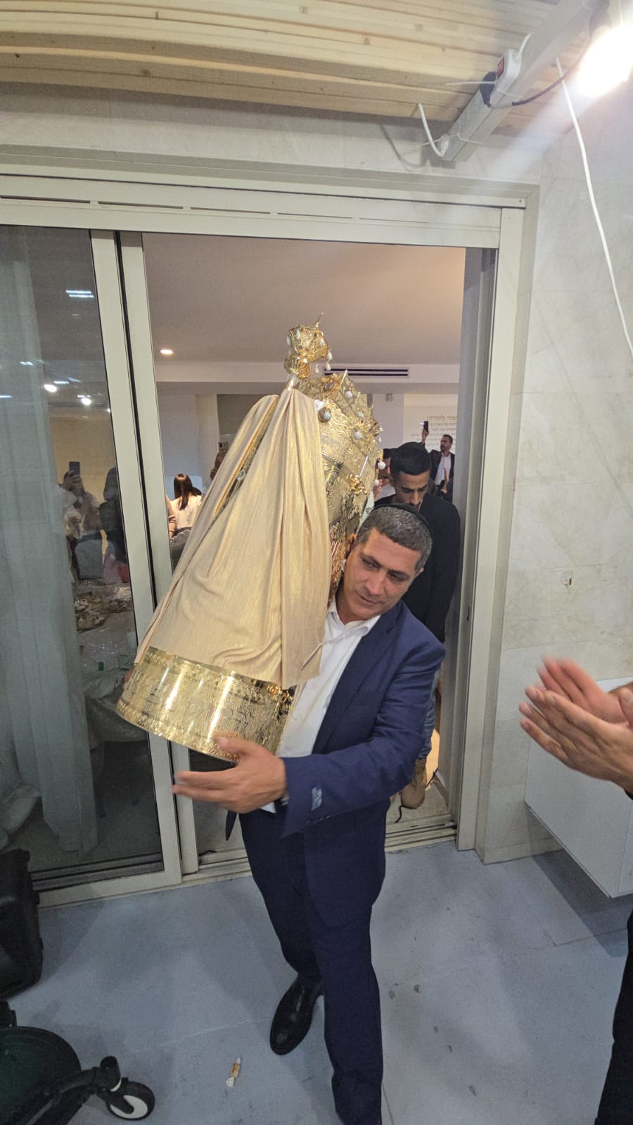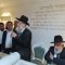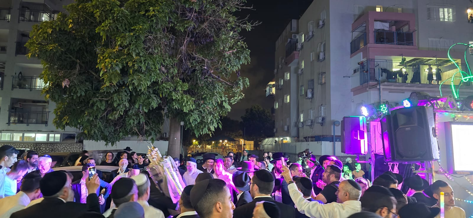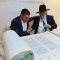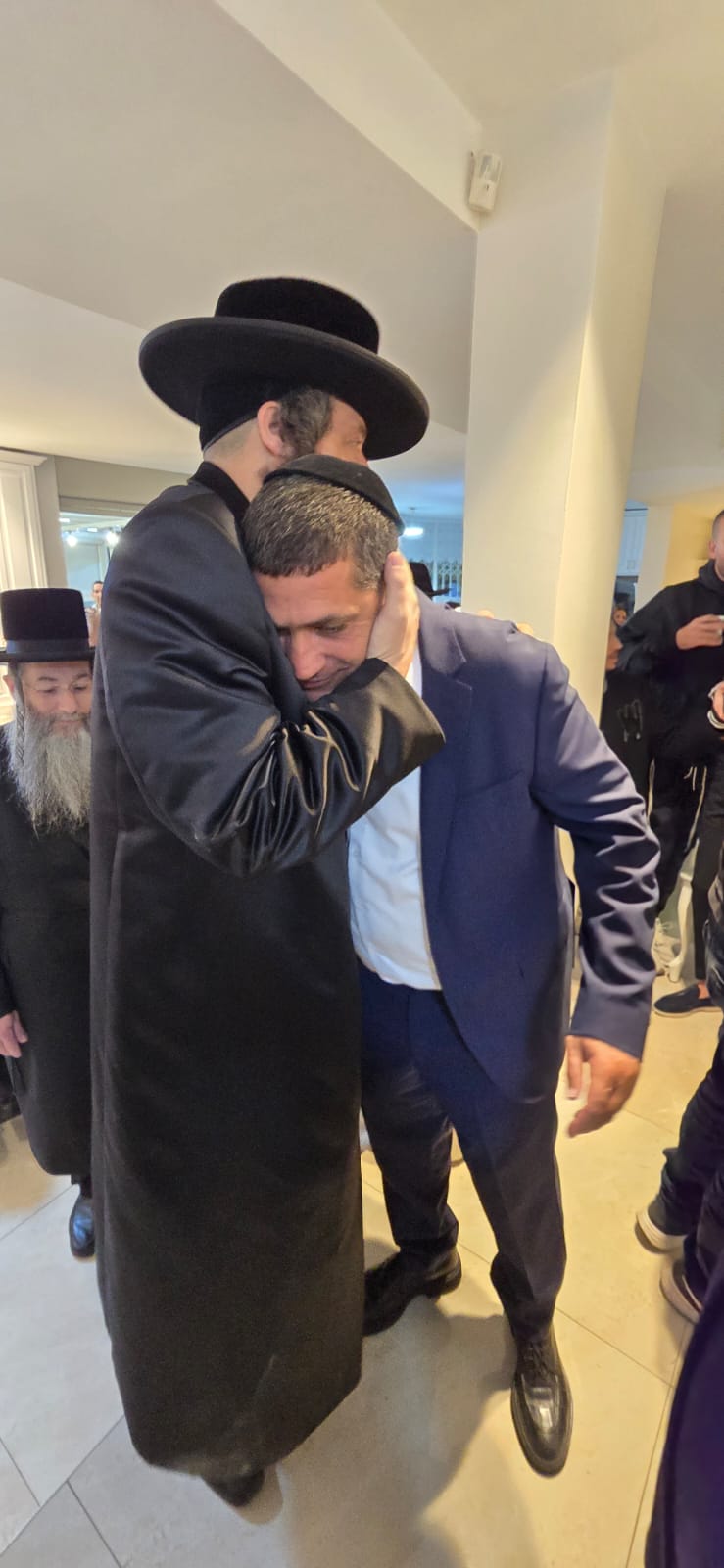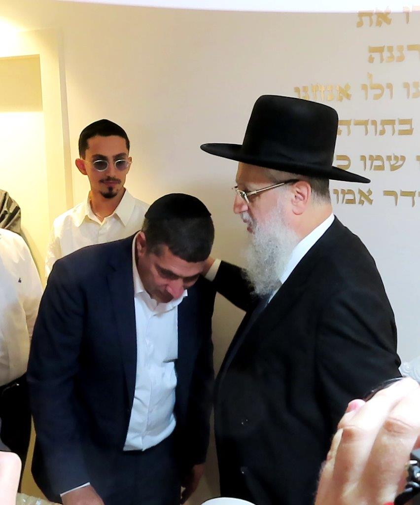 בסמוך לבית הכנסת "יסוד ושורש העבודה – חסד לאביעד", יצאו לקראתם המתפללים עם ספרי תורה בידיהם ופתחו במעגלים עד להכנסתם להיכל בבית הכנסת, ברוב עם.