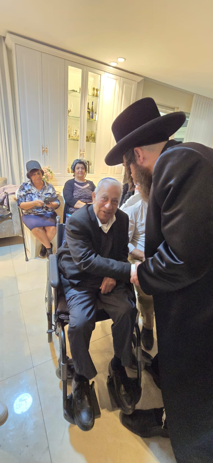 עם צאתו, עברו המשתתפים לפניו להתברך, ובירך את כולם שימלא ה' כל משאלות ליבם לטובה ולברכה.
