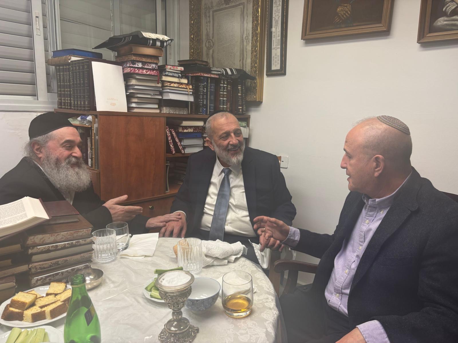 מפגש פסגה מפתיע: אריה דרעי, אבי אמסלם וראש העיר לסרי אצל רבי יקותיאל אבוחצירא
