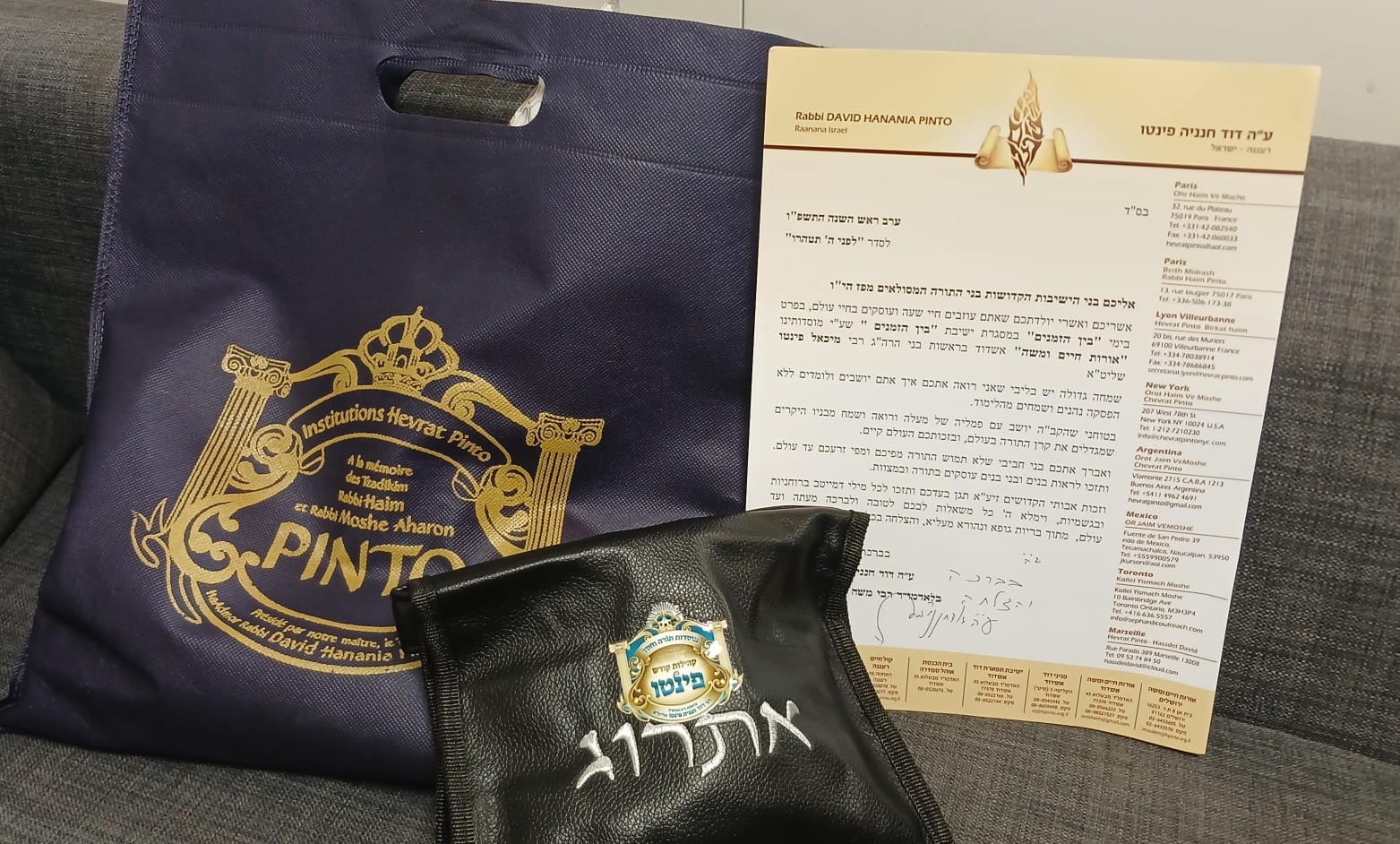 אתם מגדלים את קרן התורה בעולם: האדמו"ר הגה"צ רבי דוד חנניה פינטו שליט"א העניק 'שי אישי' לתלמידי ישיבות בין הזמנים לקראת החגים על השתתפותם בישיבת בין הזמנים
