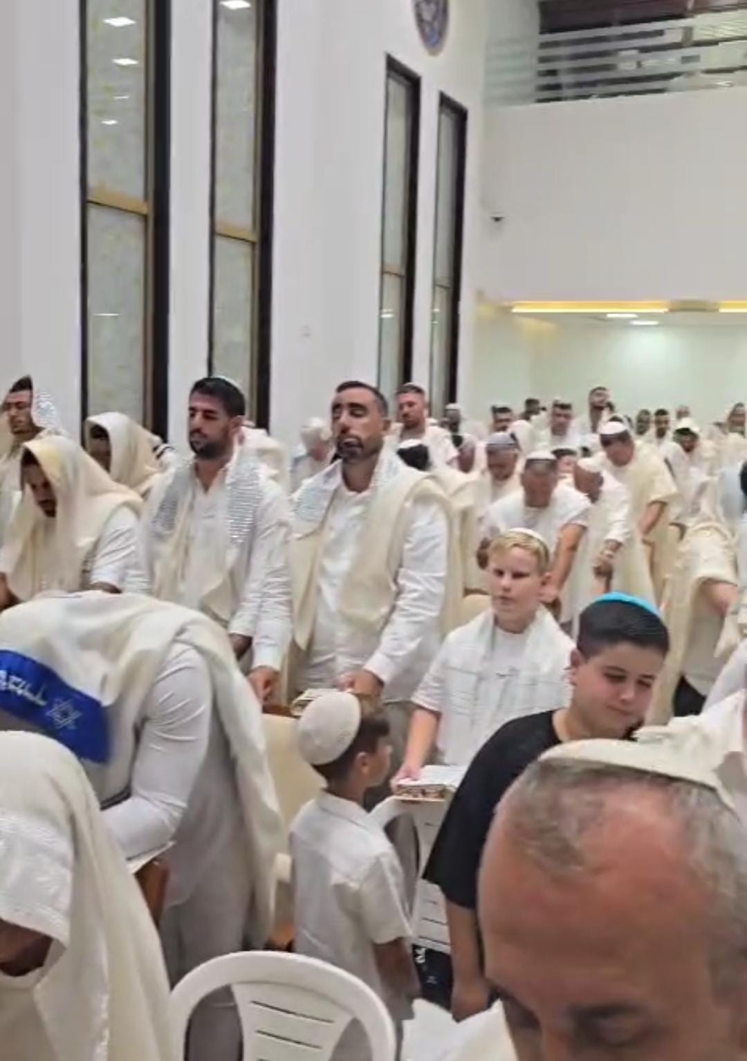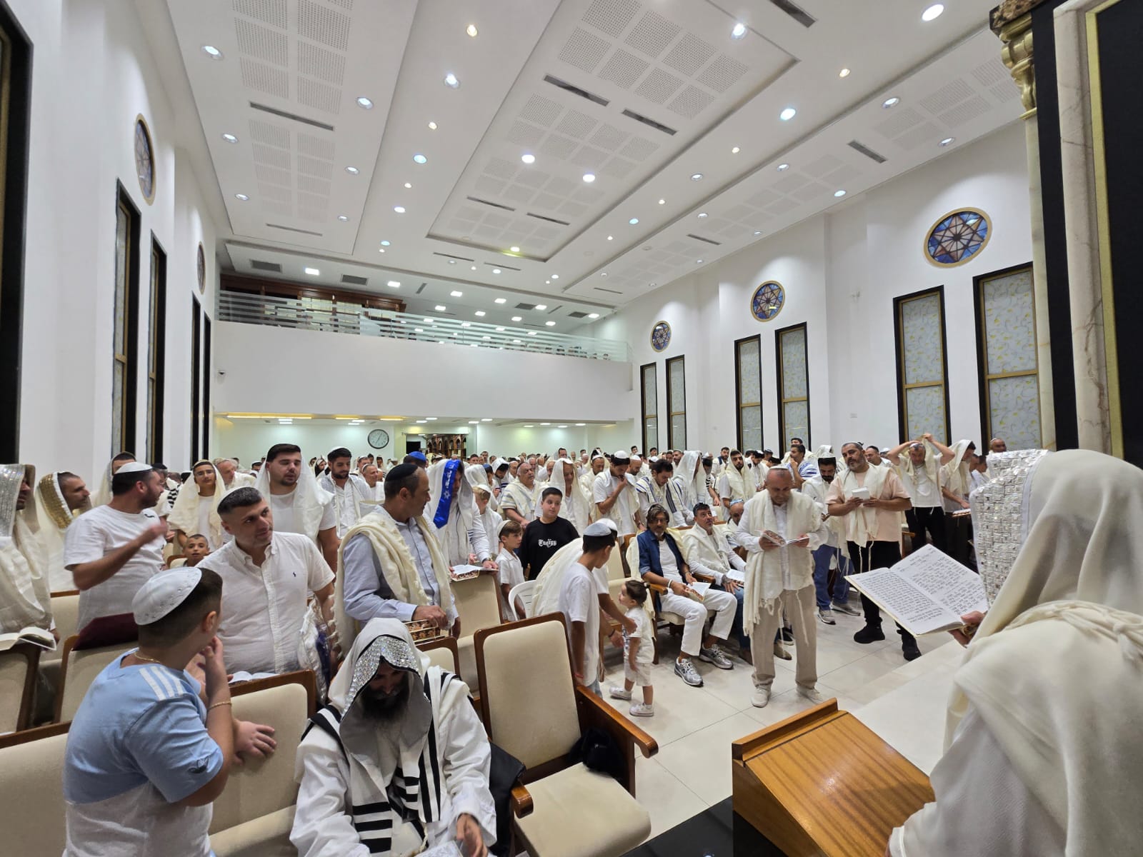 המוני מתפללים גדשו את היכל בית הכנסת שע"י מוסדות התורה והחסד "בית מאיר" בסיטי בראשותו של בנש"ק האדמו"ר רבי שמואל טולידאנו שליט"א.