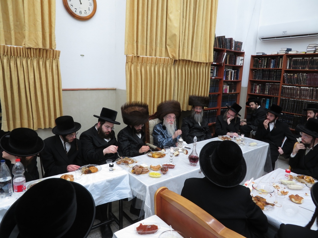 השמחה התקיימה בבית מדרשו של האדמו"ר ממעליץ בהשתתפות ציבור גדול ונכדי כ"ק מרן אדמו"ר מבעלזא שליט"א.