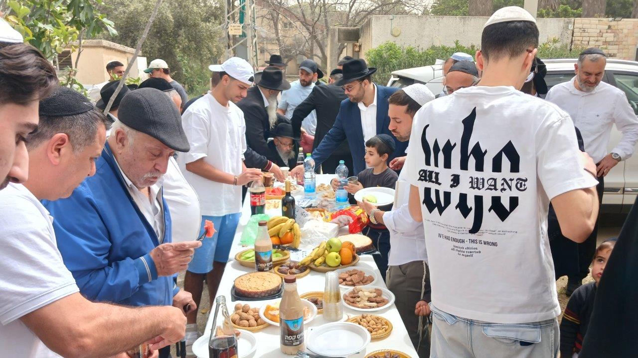 משם פנו לחצר אחד התלמידים, אשר כמידי שנה ערך שולחן מעוטר במיני תרגימא, כדי שהמשתתפים יערכו ברכות לכבוד המעמד.