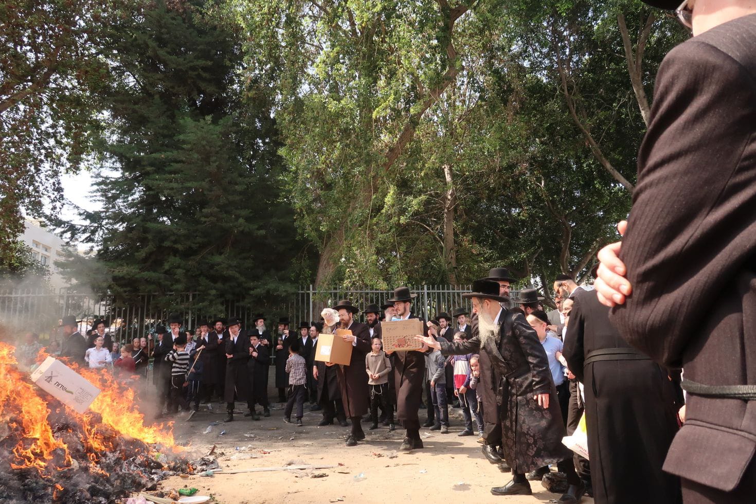 מכירת החמץ לגוי, שריפת החמץ, אפיית המצות וטיש חוה"מ: צפו במראות החג בחצרו של האדמו"ר ממעליץ שליט"א