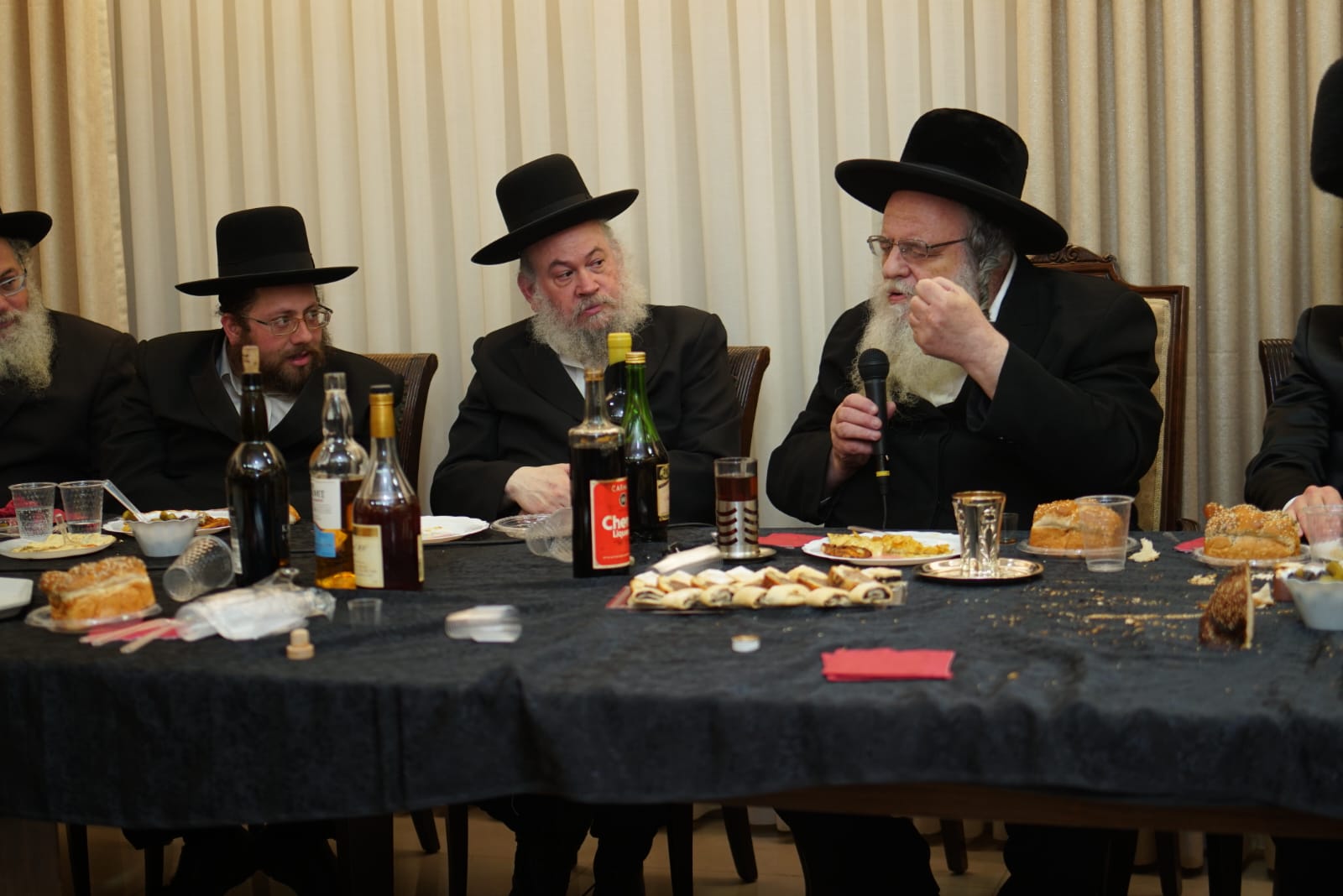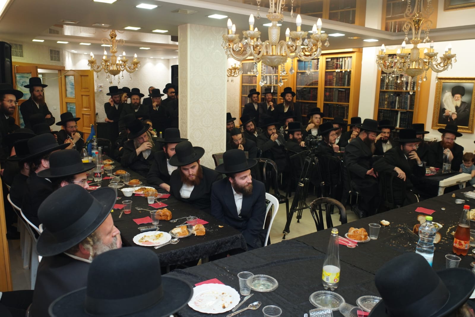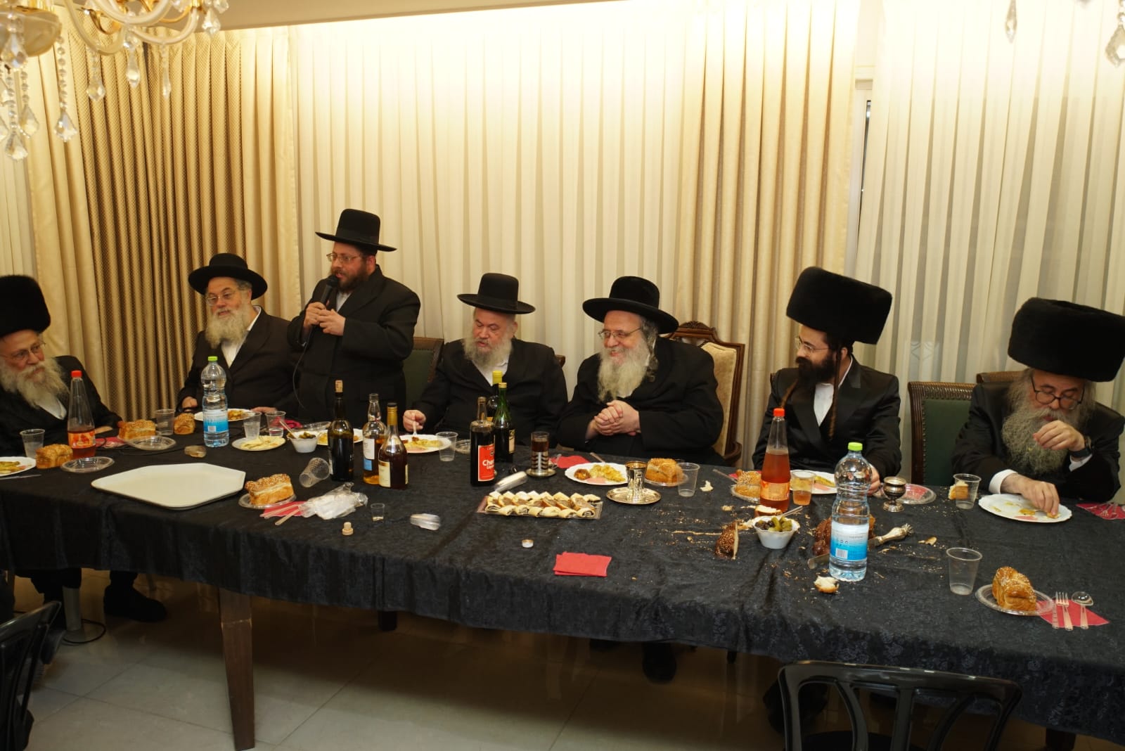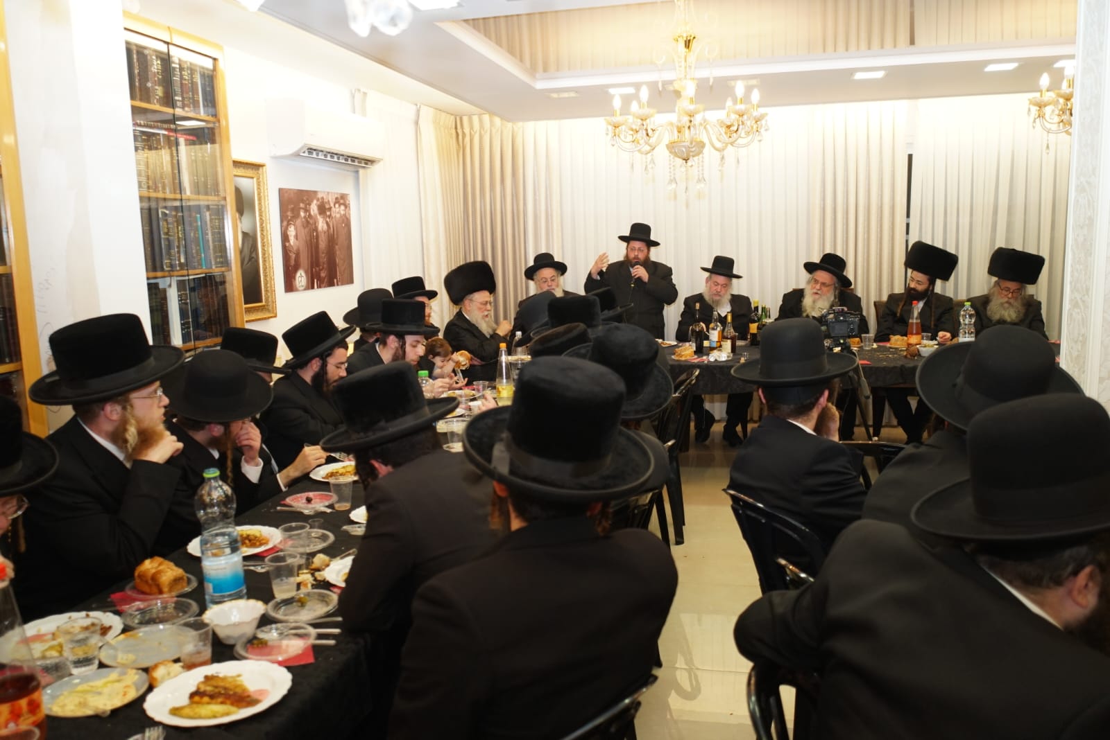 אברכי כולל 'פני מנחם' שבו לומדים מיטב אברכי הקהילות החסידיות בעיר ערכו שמחת שבע ברכות לכבוד מנהל המוסדות, הרב נייהוז. ראש הישיבה הגיע להוקיר.