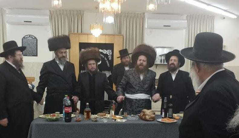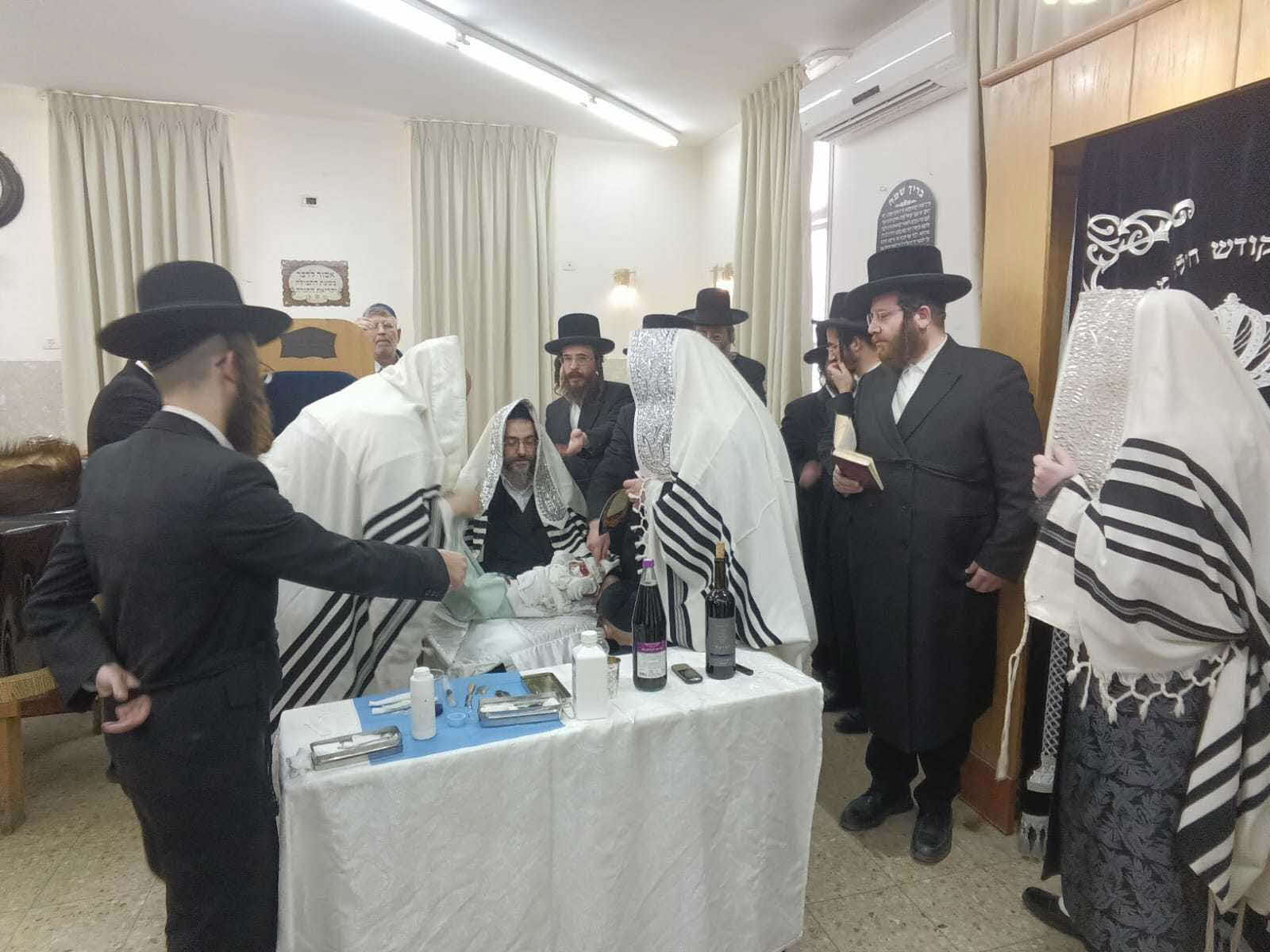 שמחת ברית המילה בחצרות הקודש 'קהל יראים' קרעטשיניף קרית גת במעמד האדמו"רים