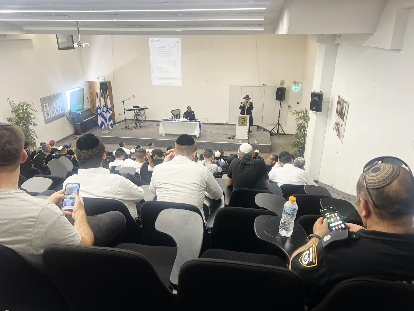 שוטרי משטרת ישראל ממחוז ירושלים נהנו לשמוע את דבריו המרתקים של הרה"ג רבי מאיר אבוחצירא שליט"א רבה של הסיטי ורבה של ק"ק "תפארת רפאל וראש מוסדות "תורה לשמה" כשהופיע בכנס מיוחד לקראת מתן תורה באולם האודיטוריום בבנין בזק בירושלים.