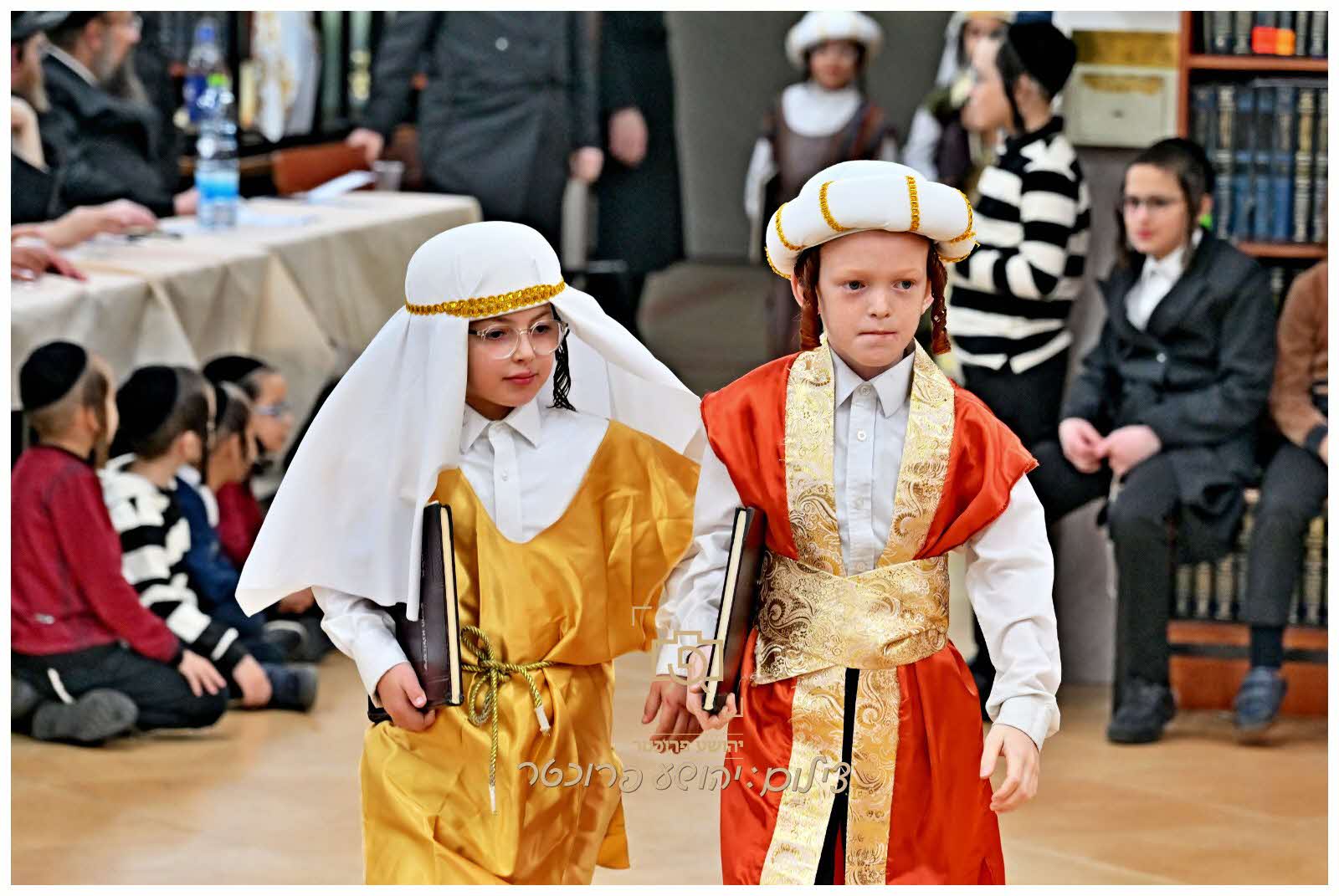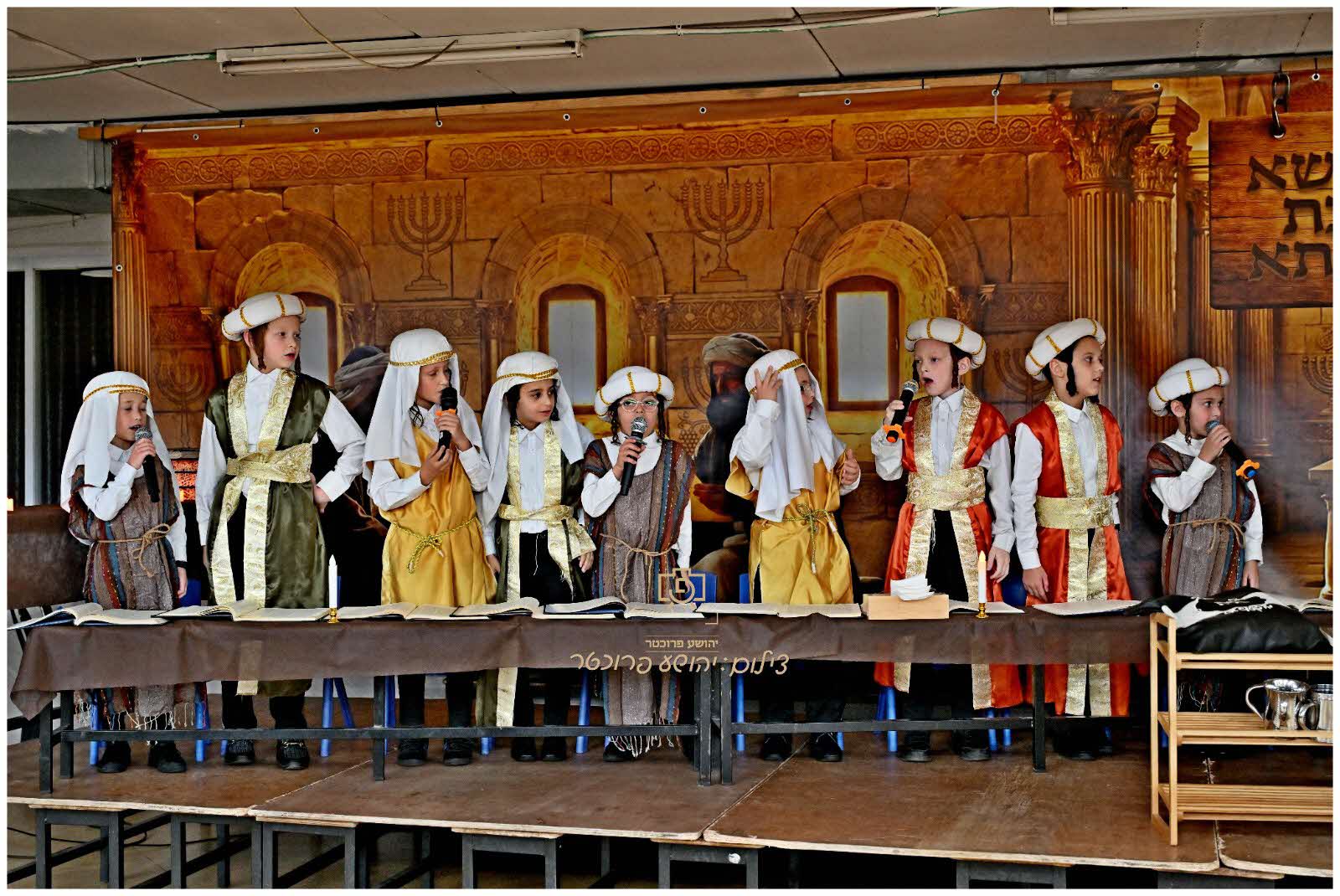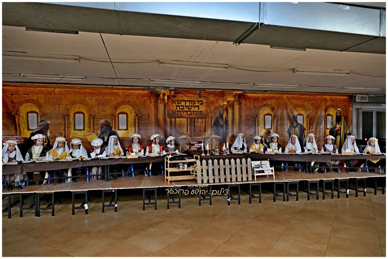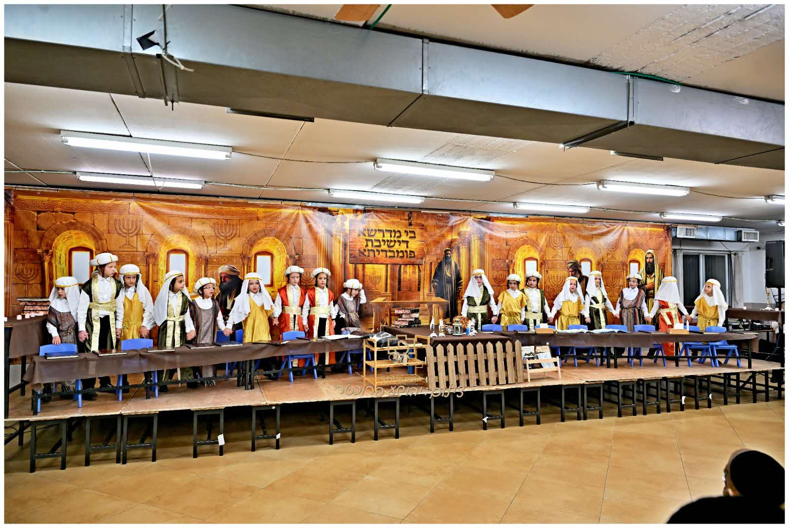רגע השיא של המעמד נרשם במהלך הצגה ייחודית ומושקעת תחת הכותרת "תורה מיט חסידות און בבל" עם תפאורה מרשימה של ישיבת פומבדיתא העתיקה. התלמידים שהיו לבושים בבגדי התקופה בבבל, הציגו כיצד גם בהיכלי הישיבות הקדומים שילבו הלומדים גאונות בתורה לצד כניעה והתבטלות לצדיקי אמת.