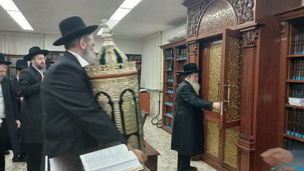 בתפילת המנחה כובד האדמו"ר הגה"צ רבי רפאל אבוחצירא שליט"א בפתיחת ההיכל לקריאת "ויחל" כפי שנוהגים ביום שיש בו תענית, בעליית שלישי כובד ראש הכולל הרה"ג ר' אהרון סאמעט שליט"א.
