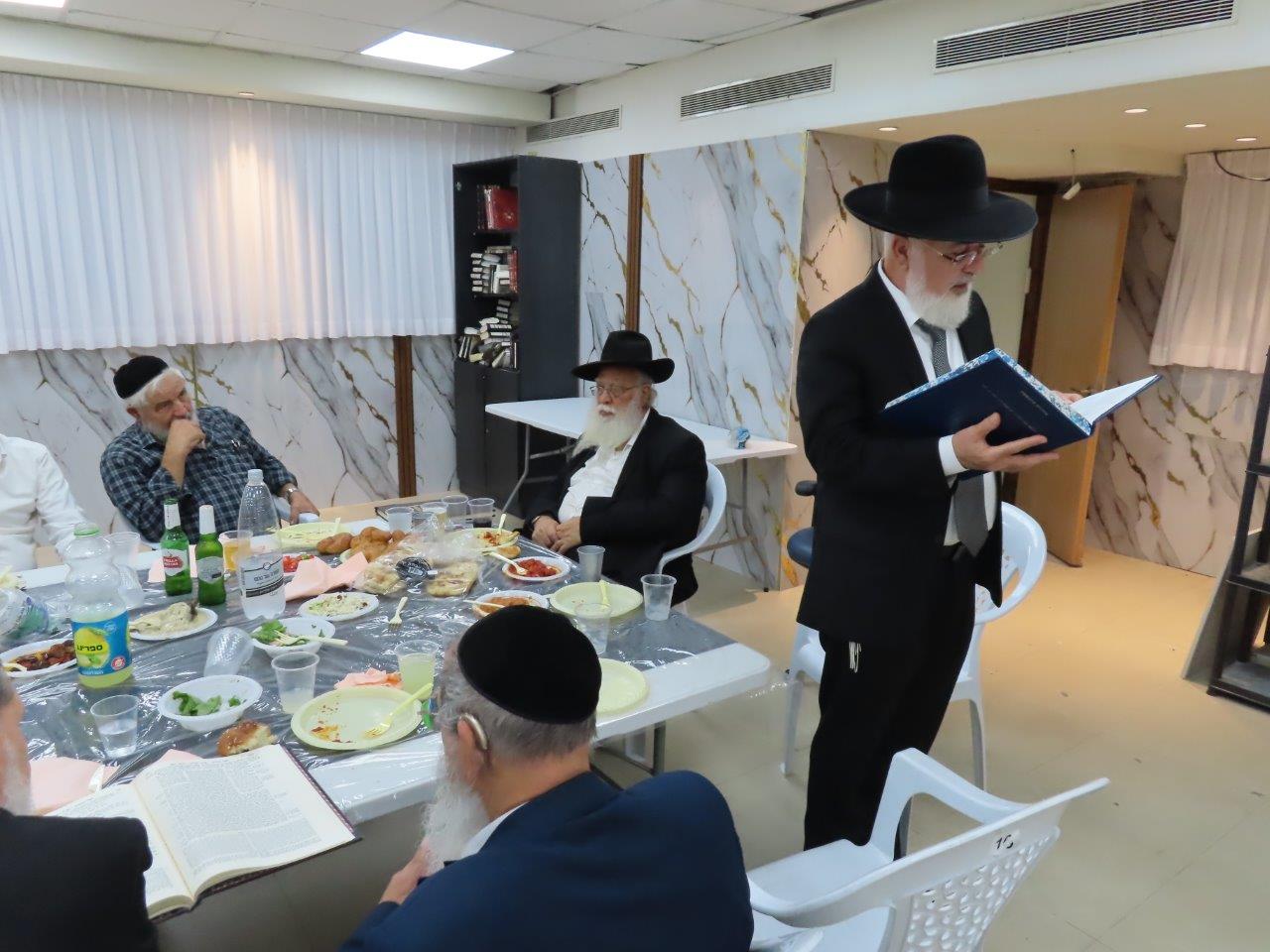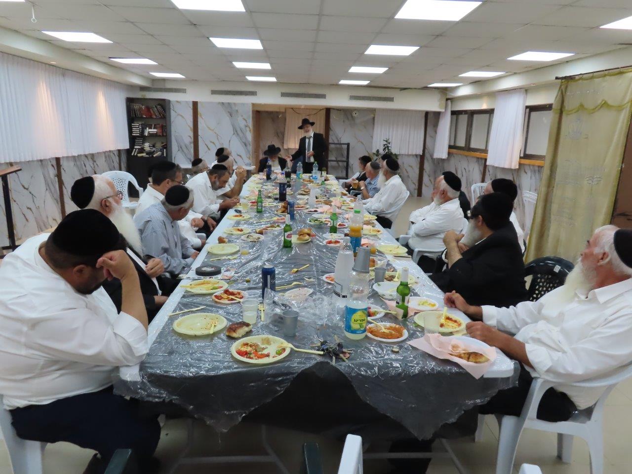 הדרן עלך: משתתפי השיעור הקבוע מידי ערב בבית הכנסת הריב"ז, חגגו כאשר ערכו סיום על סדר "מועד" עם סעודת מצוה.