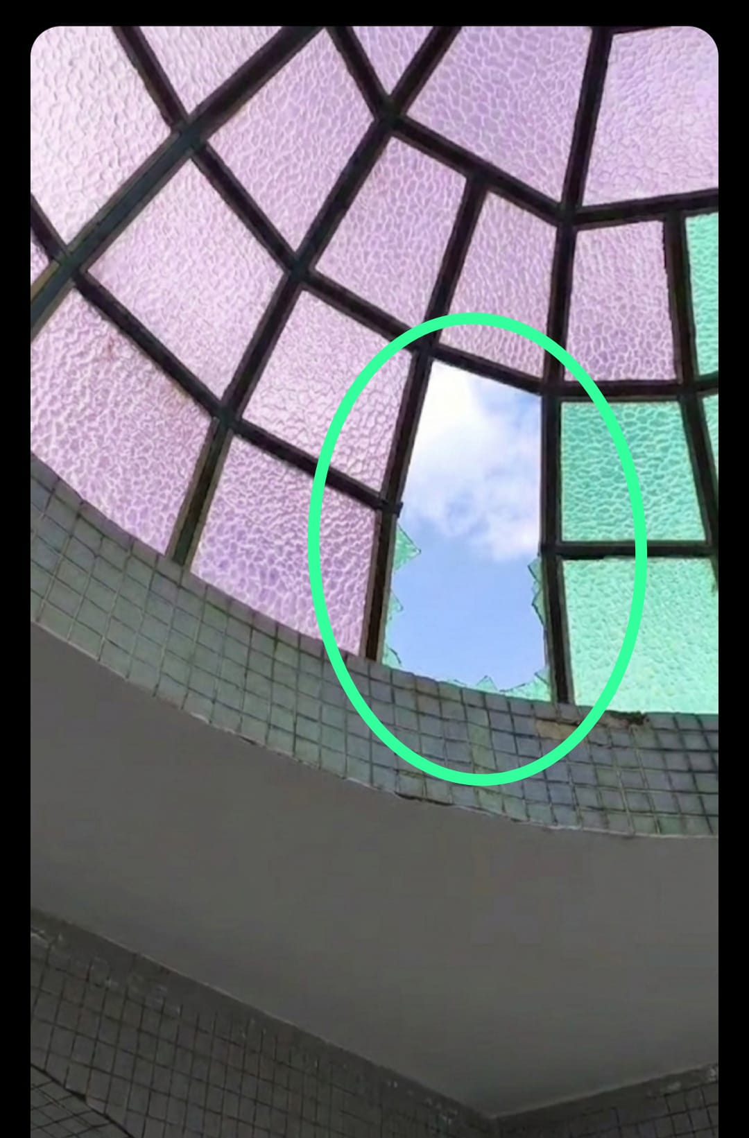 אלעד גוזל ביקר לאחרונה לקראת ההילולא וגילה שבכיפת הגג שמעל הציון, נשברה אחת מזכוכיות הצבעוניות.