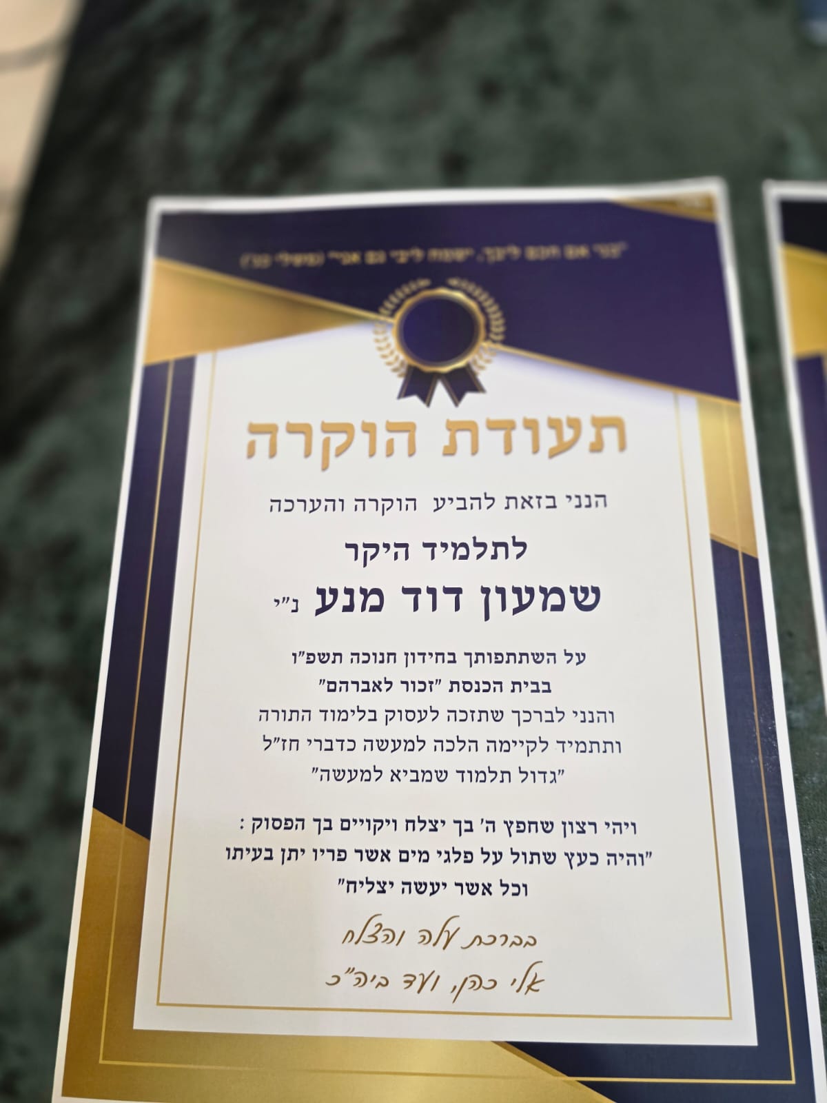לשלב הגמר העפילו שבעה תלמידים מצטיינים, שלמדו והתכוננו בשיעור שבועי מדי מוצאי שבת בהנחיית אלי כהן. במקום הראשון זכו יחד הילדים הילל לחן ויאיר ניסמי. במקום השלישי זכה הילד יותם מנע. כל המשתתפים קיבלו תעודות הוקרה. לאחר החידון התקיים מופע קליקרים והגרלה נושאת פרסים. כל ילד יצא עם מארז חנוכה ושובר הפתעה. אלי כהן, יוזם ומנחה החידון, הודה "לוועד בית הכנסת על התמיכה, לתורמים היקרים, לרבנים, לאורח הכבוד הרב אמסלם, ולילדים המתוקים שהתמידו בלימוד. זו זכות להיות שליח לחוויה שמקרבת את הילדים לתורה מתוך אהבה".