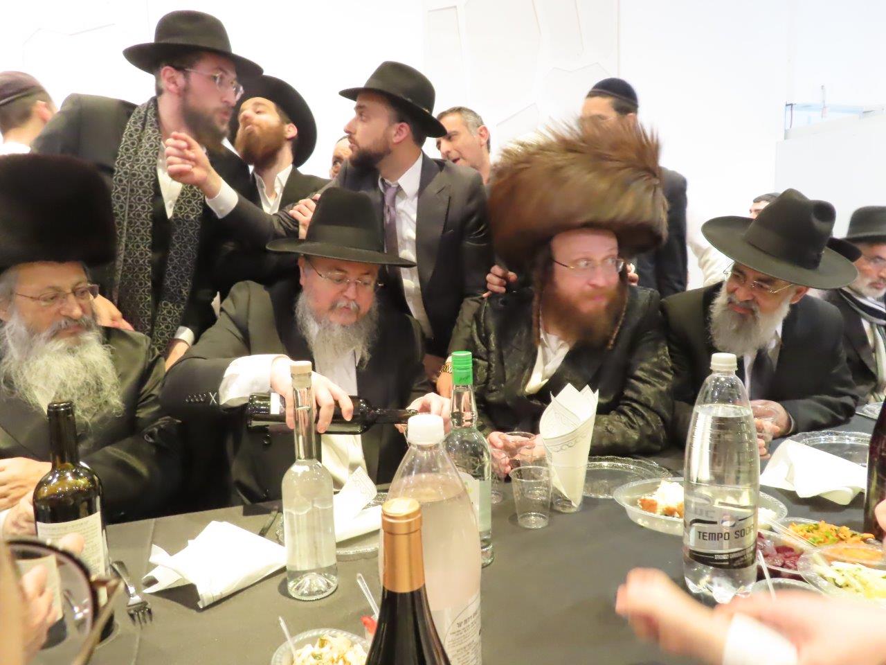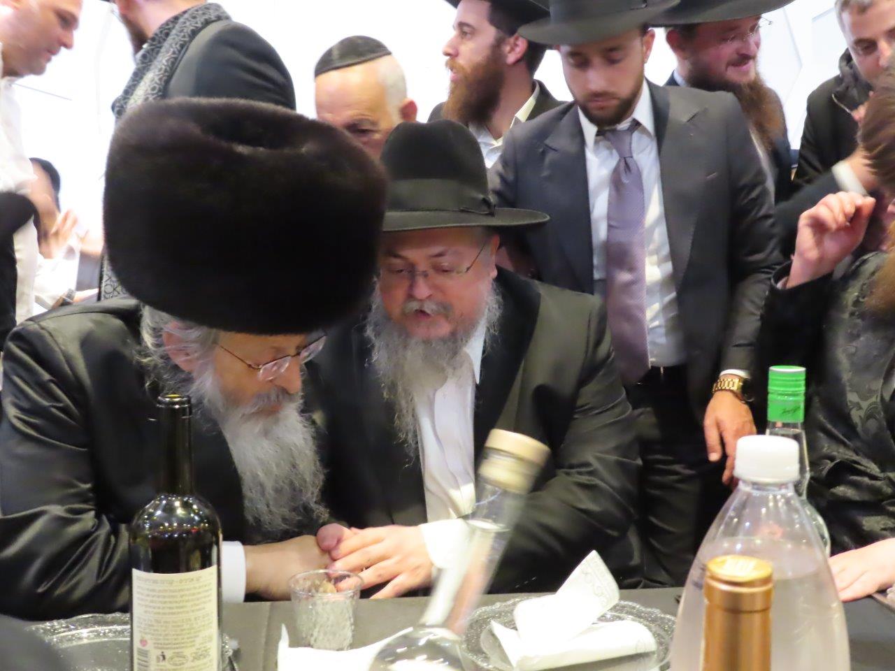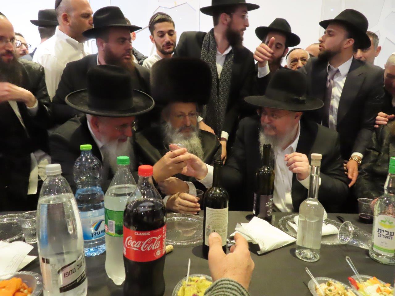 האדמו"ר הרה"צ רבי ישועה ורחמים אבוחצירא שליט"א מזג כוס של ברכה לאלפים הרבים ובירך כל העת את הקהל הרב שנהר כל הערב לשולחן המזרח.