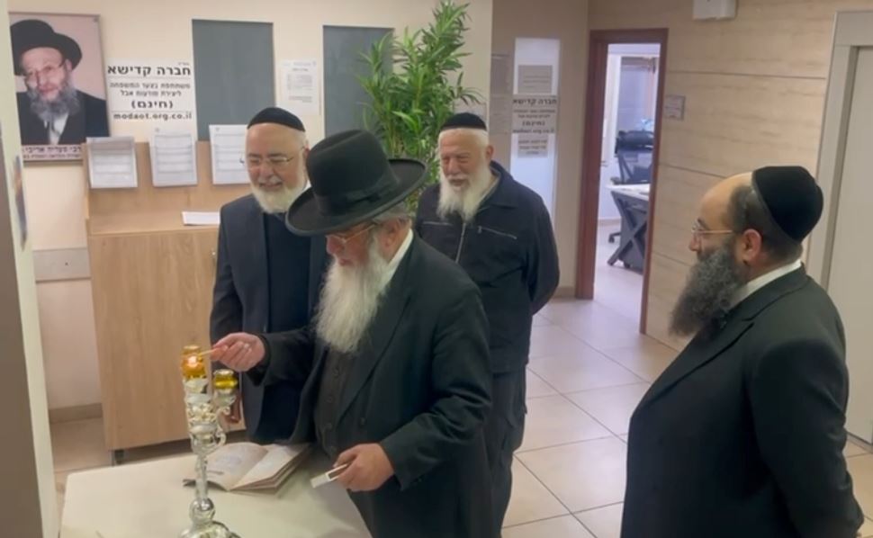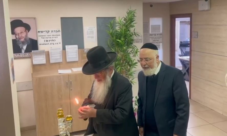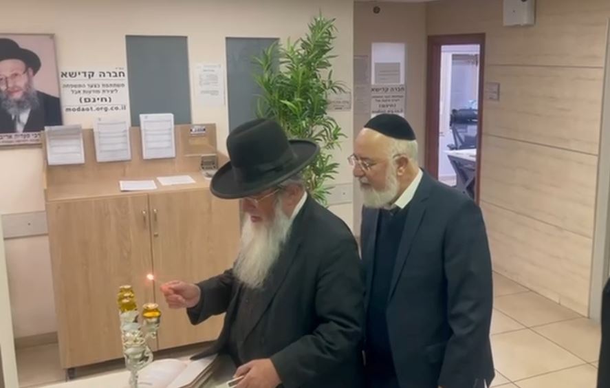 לפרסם הנס: רב שכונות אשדוד הגר"ח קלמנוביץ כובד בהדלקת הנר בבניין המועה"ד