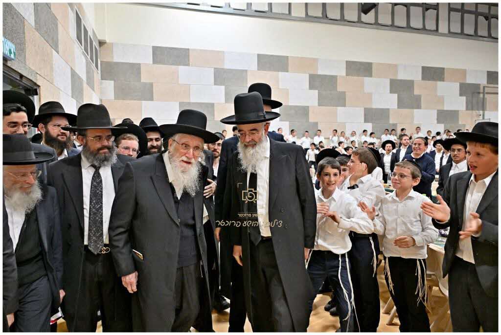 בעיצומו של המעמד קידמו מאות המשתתפים בהתרגשות רבה את פני עמוד ההוראה הגר"ע אויערבאך שטרח לכבוד המעמד האדיר ואף נשא דברים לכבוד התורה ולומדיה ובענייני השעה.