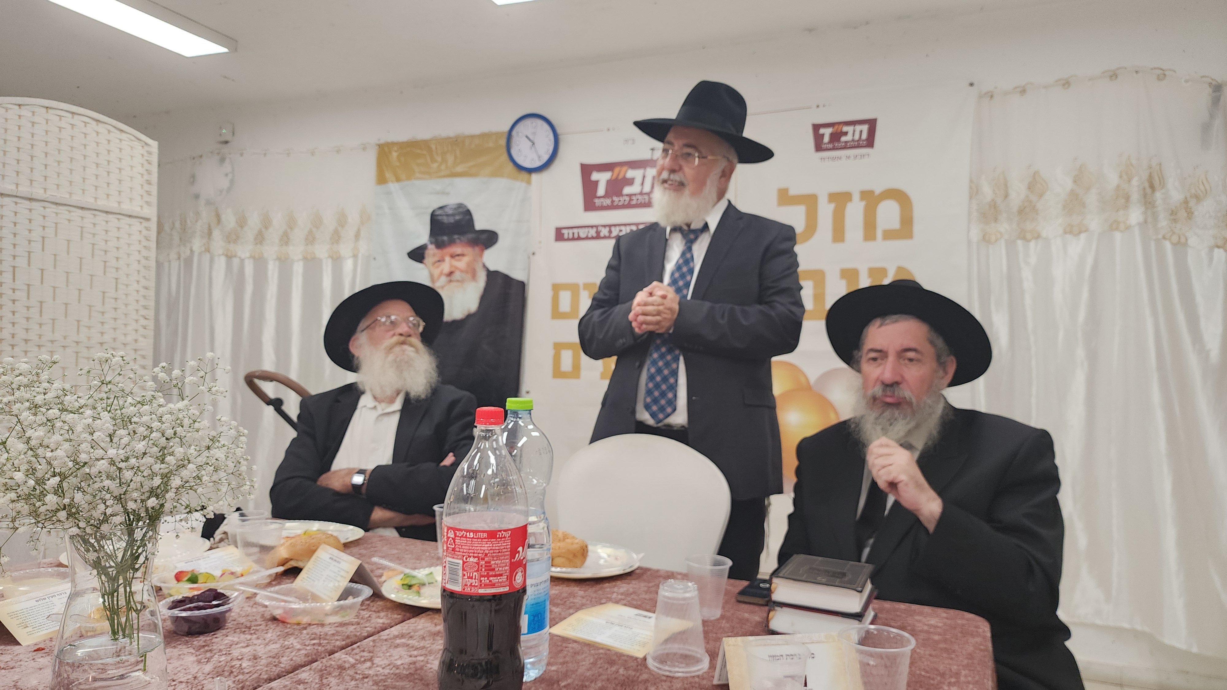 במעמד שמחת השבע ברכות, שהתקיים בבית חב"ד רובע א' באשדוד, השתתפו יו"ר המועצה הדתית באשדוד, הרב עובדיה דהן שליט"א, הרב חיים קלמנוביץ' שליט"א, מרבני העיר, וחברי מועצת העיר הרב אפרים וובר והרב עזרא שור.