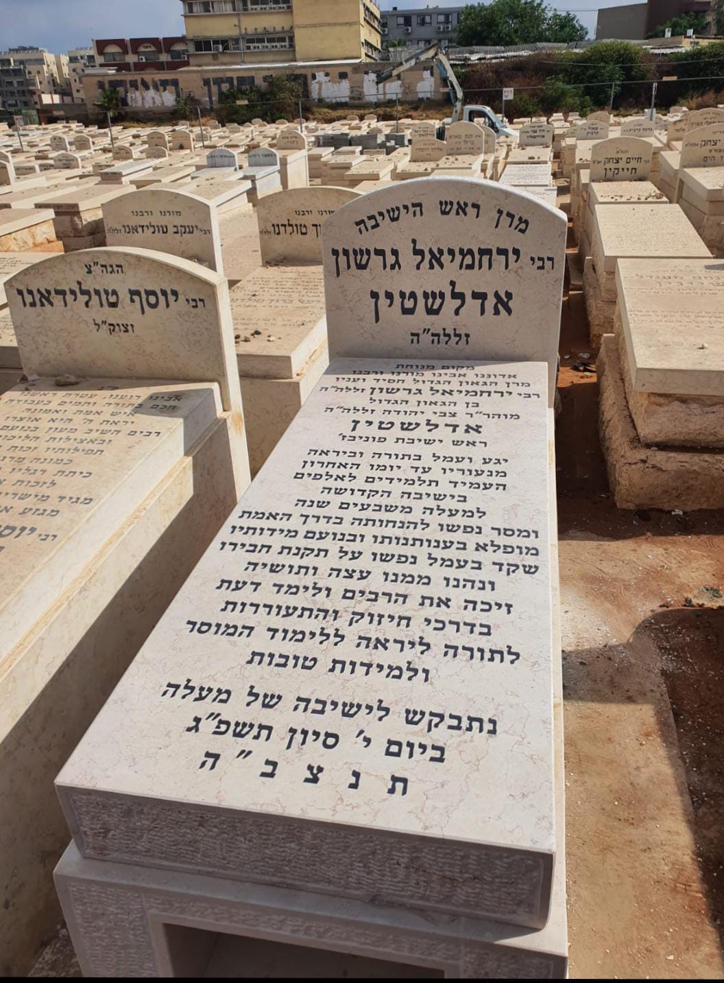 אגב, לקראת השלושים שיחול ביום חמישי הקרוב, המצבה כבר הונחה בבית העלמין פונובז' לצידו של הגה"צ החסיד רבי יוסף טולידנו זצ"ל שביקש להיטמן לצידו בנו של הרה"ק רבי רפאל ברוך טולידנו זצ"ל רבה של מקנס במרוקו.