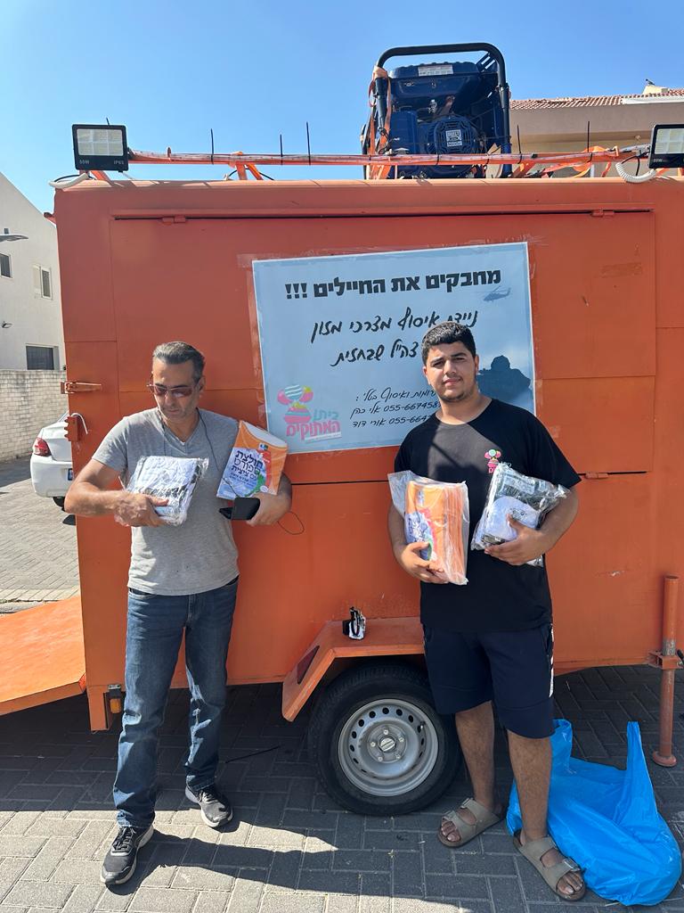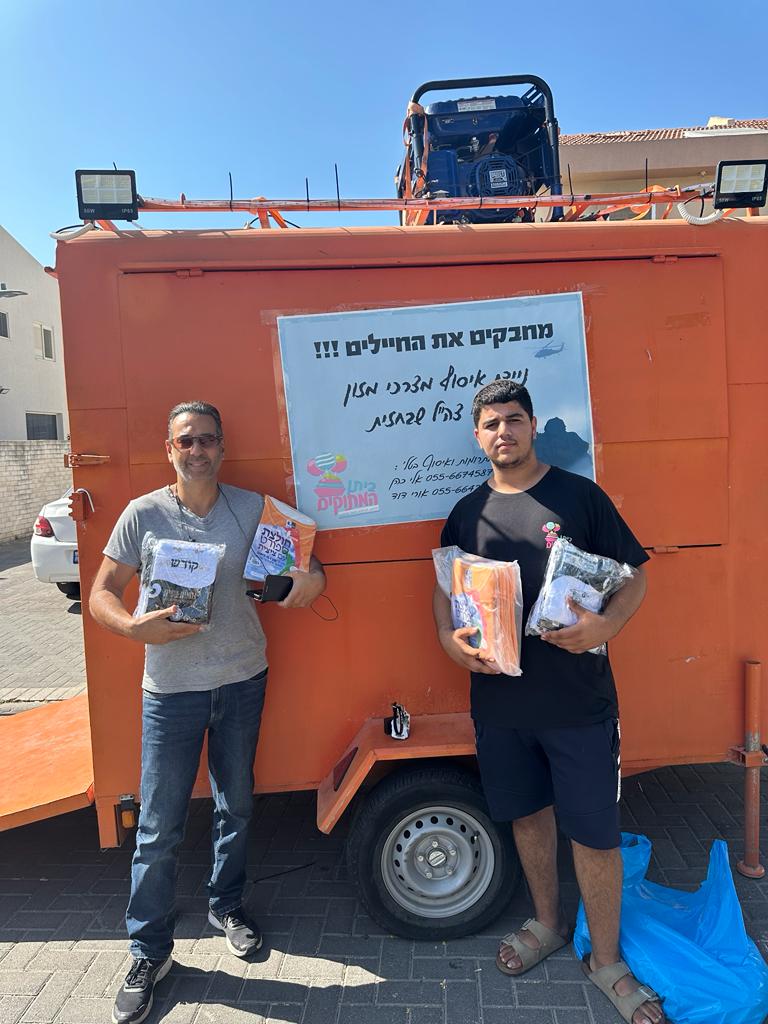 אלי כהן ובנו אורי דוד לא נחים לרגע: הם אוספים מצרכי מזון, ציציות, חלות אותן אפו נשות אשדוד, ויוצאים פעם אחר פעם לחלקם לחיילים שלא מפסיקים להודות