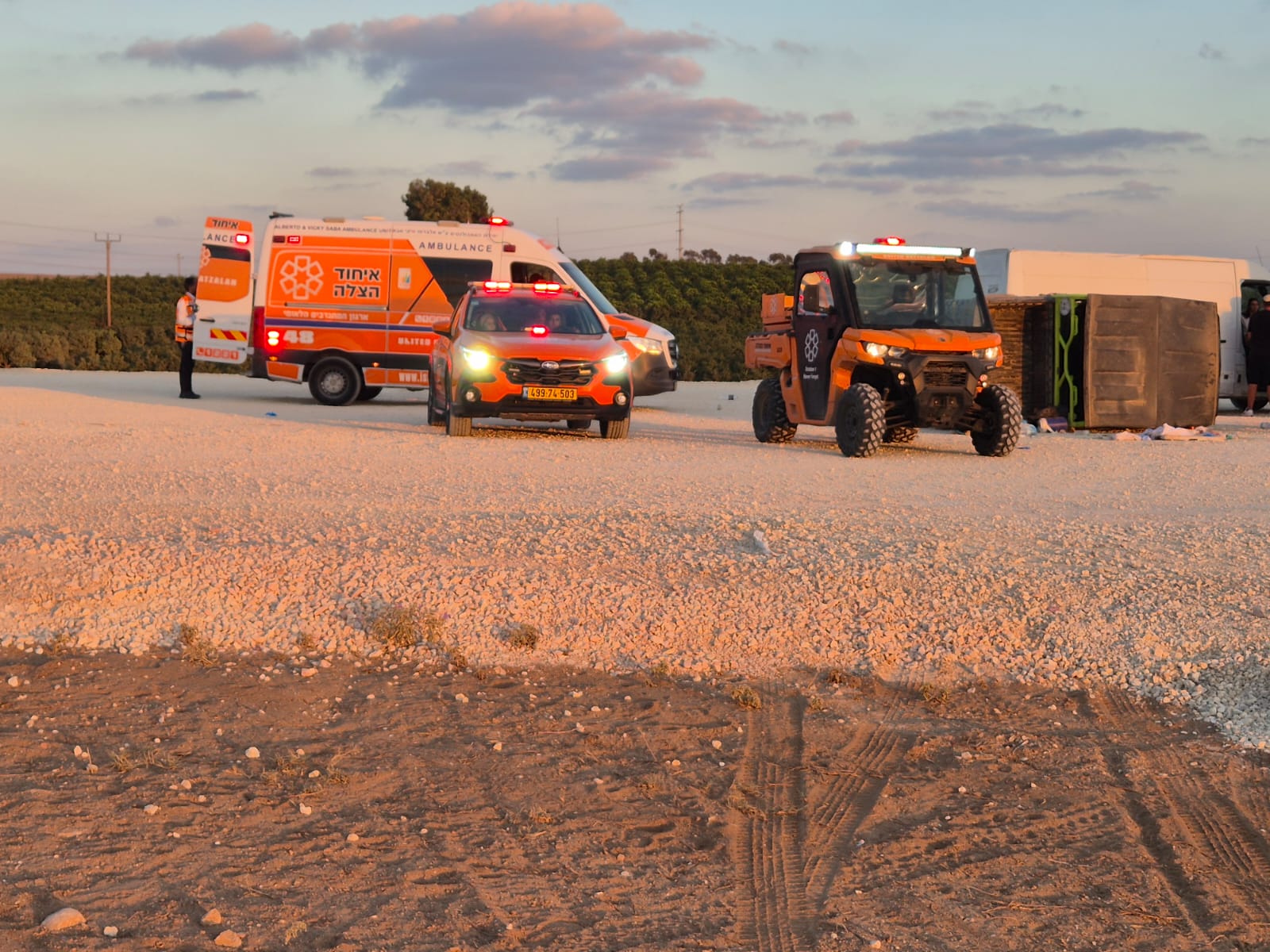 צוותים של מד"א וצוותי הרפואה של איחוד הצלה העניקו טיפול רפואי לחמישה נפגעים בתאונת דרכים בשטח פתוח בסמוך לפארק 'עד הלום' באשדוד