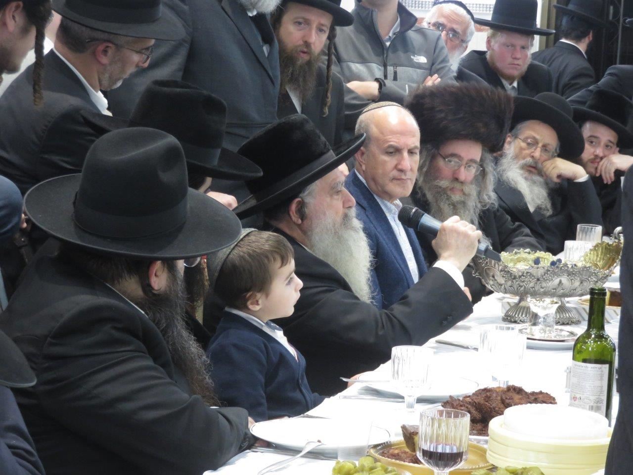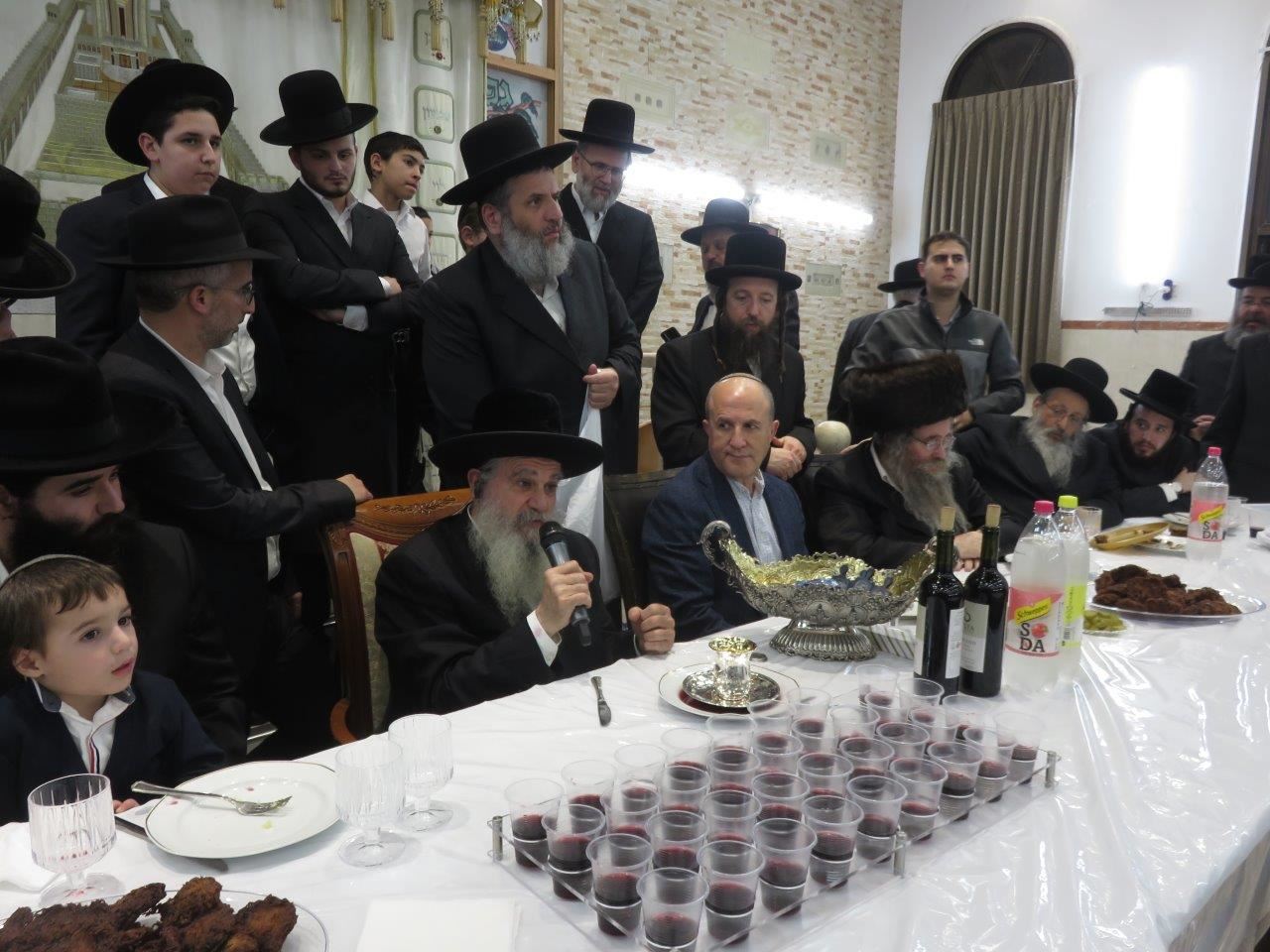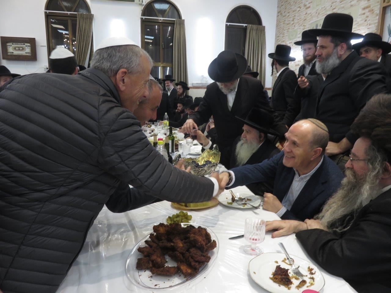 משהגיע ראש העיר אשדוד, ד"ר יחיאל לסרי, יחד עם נציגי אגודת ישראל במועצת העיר, הרב יחיאל וינגרטן והרב שמואל שוק, יצא האדמו"ר מגדרו לכבדו והושיבו לצידו.
