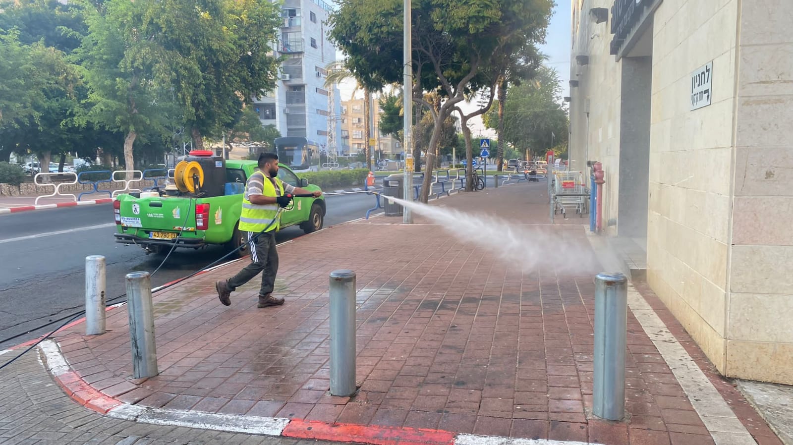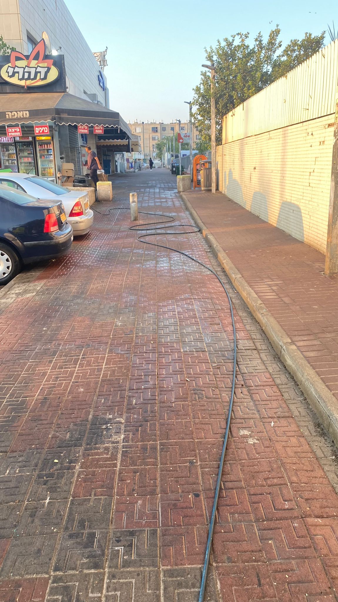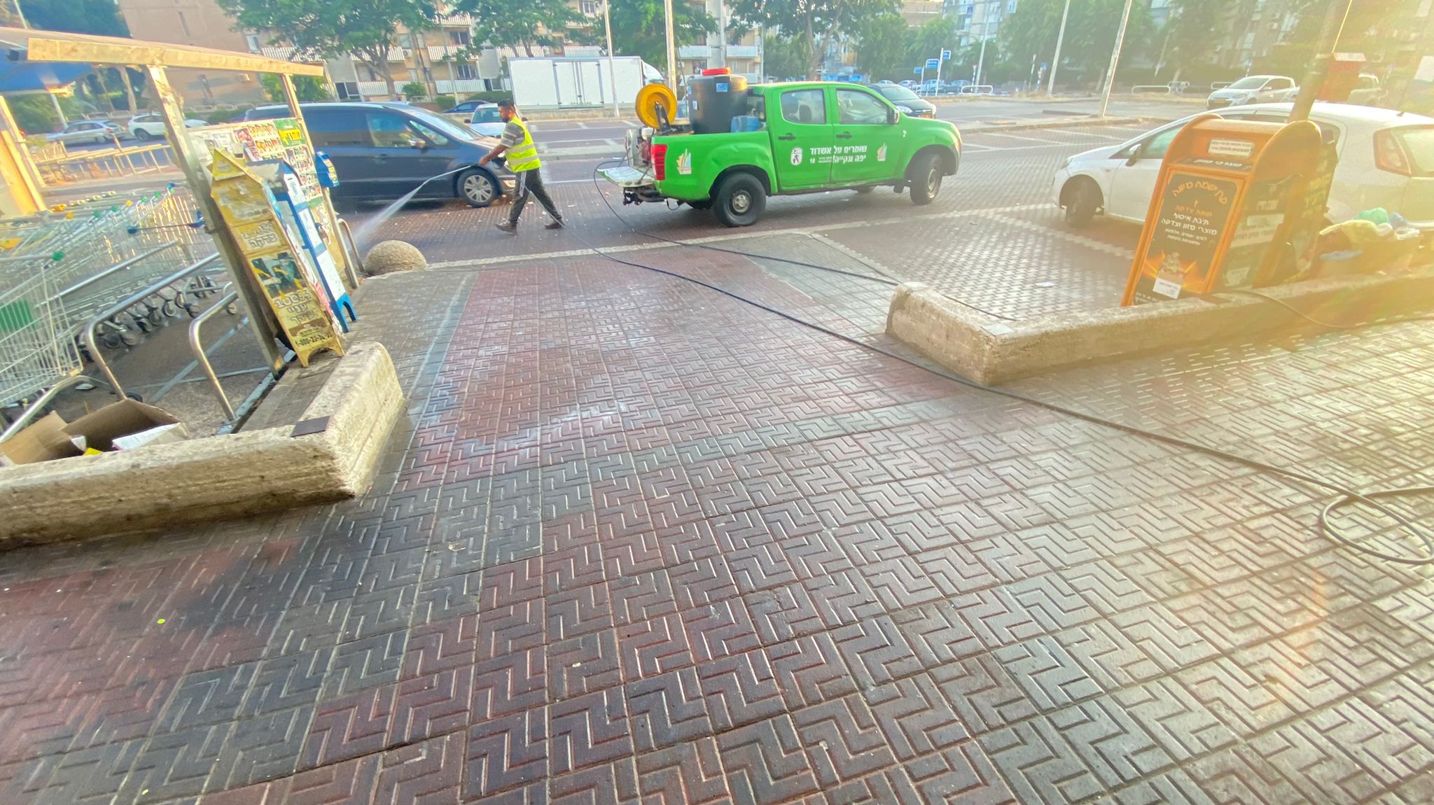 שעות אחדות לפני פתיחת החנויות, מינהלת רובע ג' החלה לשטוף את המרכזון בצורה יסודית, הן בפסאג', הן בחזית, הן בצד החניה והן בשביל האחורי