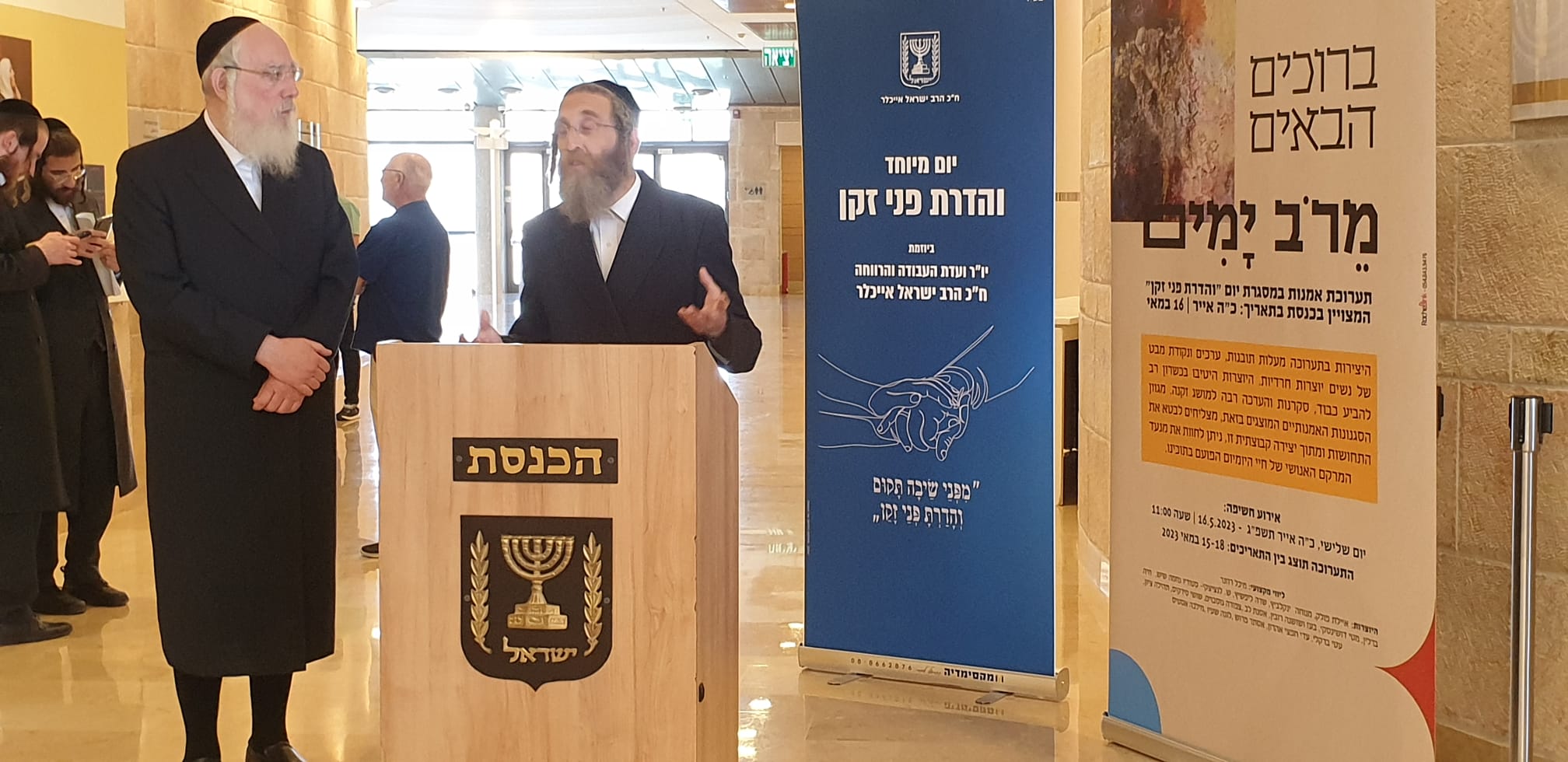 ביוזמת סגן השר במשרד התרבות ח"כ יעקב טסלר, הוצגה בכנסת גלריית אמנות חרדית, במסגרת יום "והדרת פני זקן" שצויין בכנסת ביוזמת ח"כ ישראל אייכלר, יו"ר ועדת העבודה והרווחה של הכנסת