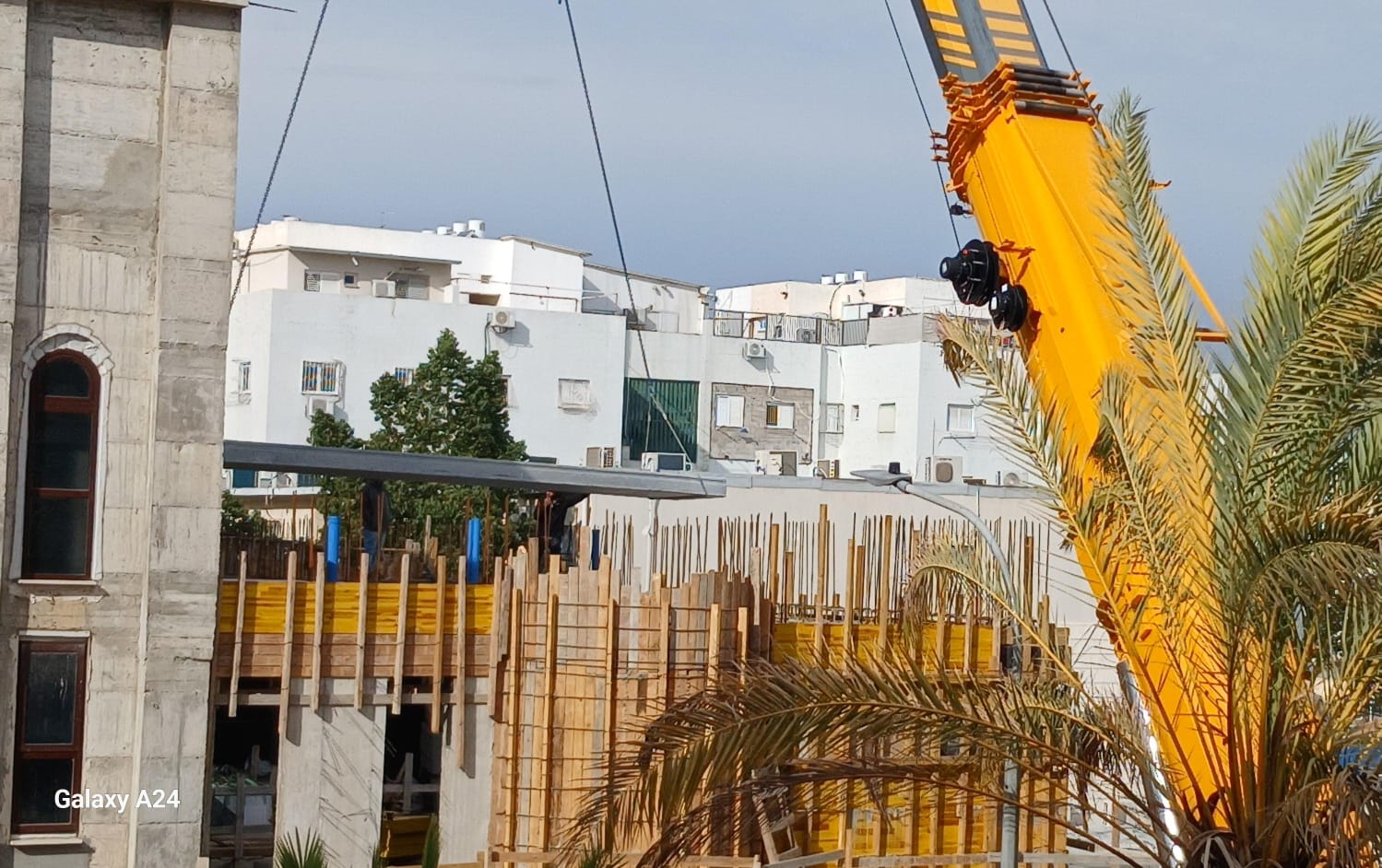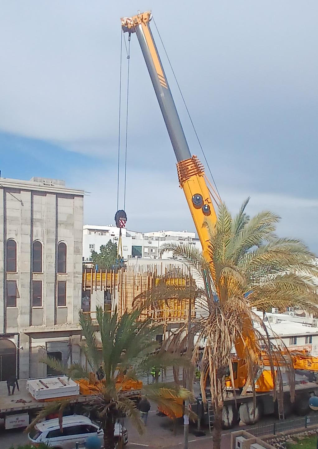 אמש, (שלישי) רחוב רב חיסדא נסגר למשך מספר שעות לפני הצהריים, לשם הנחת קורות בטון ענקיים המשמשים כתיקרה לאולם בית הכנסת ולהמשך הקומות למעלה.