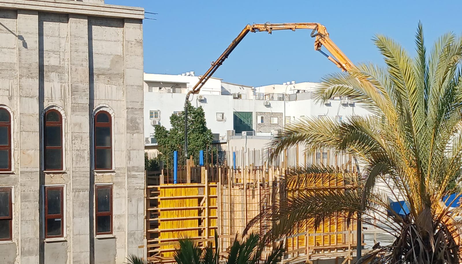אמש רחוב רב חיסדא נסגר למשך מספר שעות לפני הצהריים לטובת הנחת קורות בטון ענקיים שישמשו כתקרה לאולם בית הכנסת ולקומות העליונות