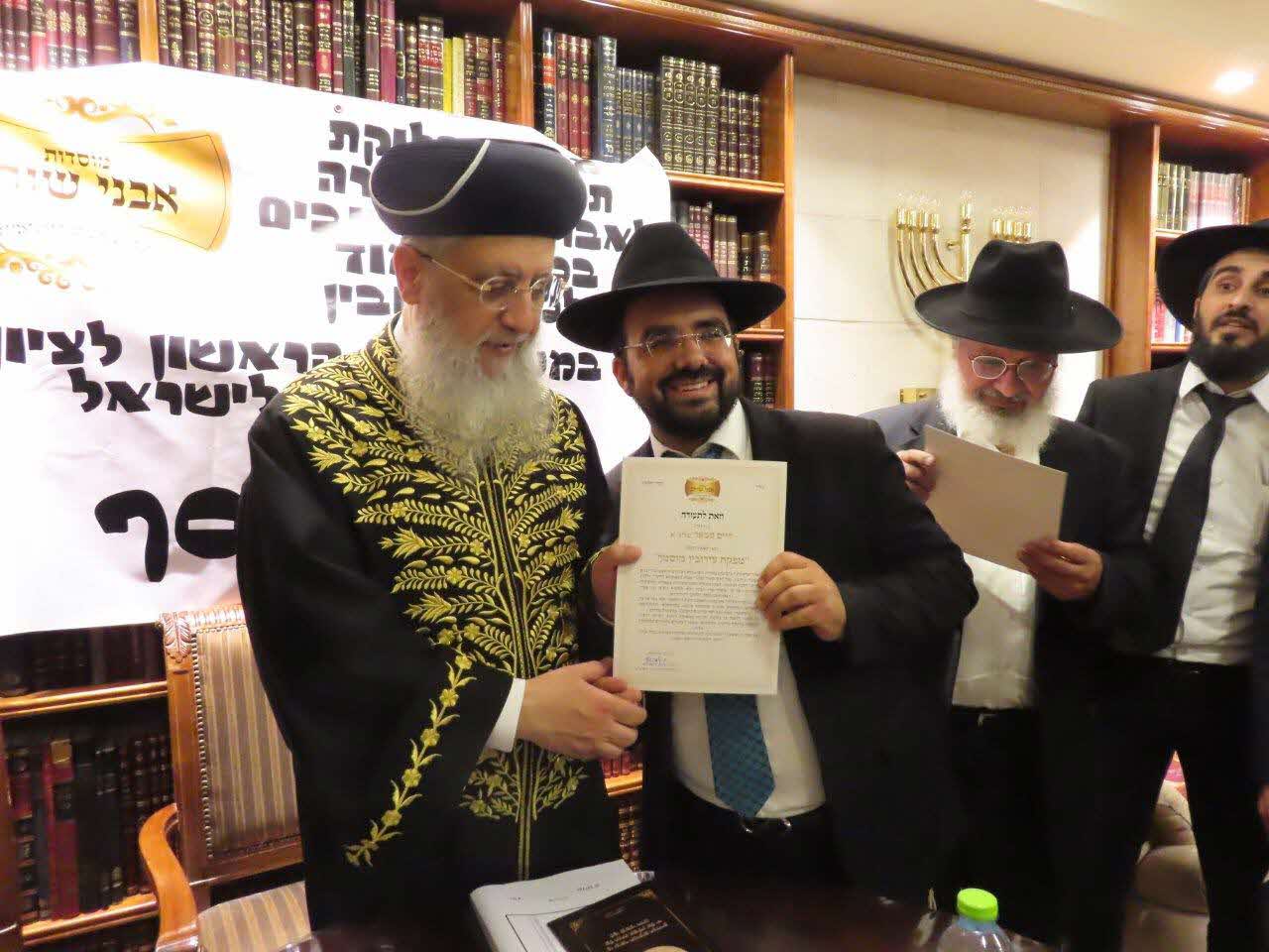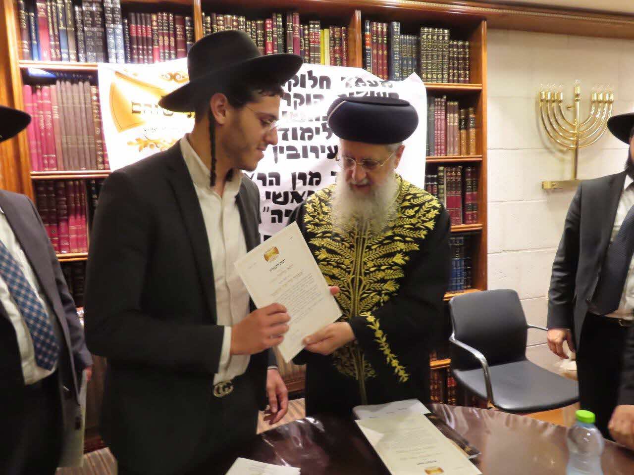 במעמד נכבד ומיוחד התקיים חלוקת תעודות הסמכה לרבנים ומפקחי עירובין בלשכתו של מרן הראשון לציון הגאון רבי דוד יוסף שליט"א נשיא בית הדין הגדול והרב הראשי לישראל. תעודות ההסמכה ניתנו לאחר סידרה ארוכה של שיעורים בהלכות עירובין בעיון שנמסרו בטוב טעם ודעת ובאופן בהיר ע"י הרה"ג רבי חיים קלמנוביץ שליט"א רב מחלקת העירובין הארצית וחבר לשכת הרה"ר, בפני קבוצה גדולה של אברכים ותלמידי חכמים.
