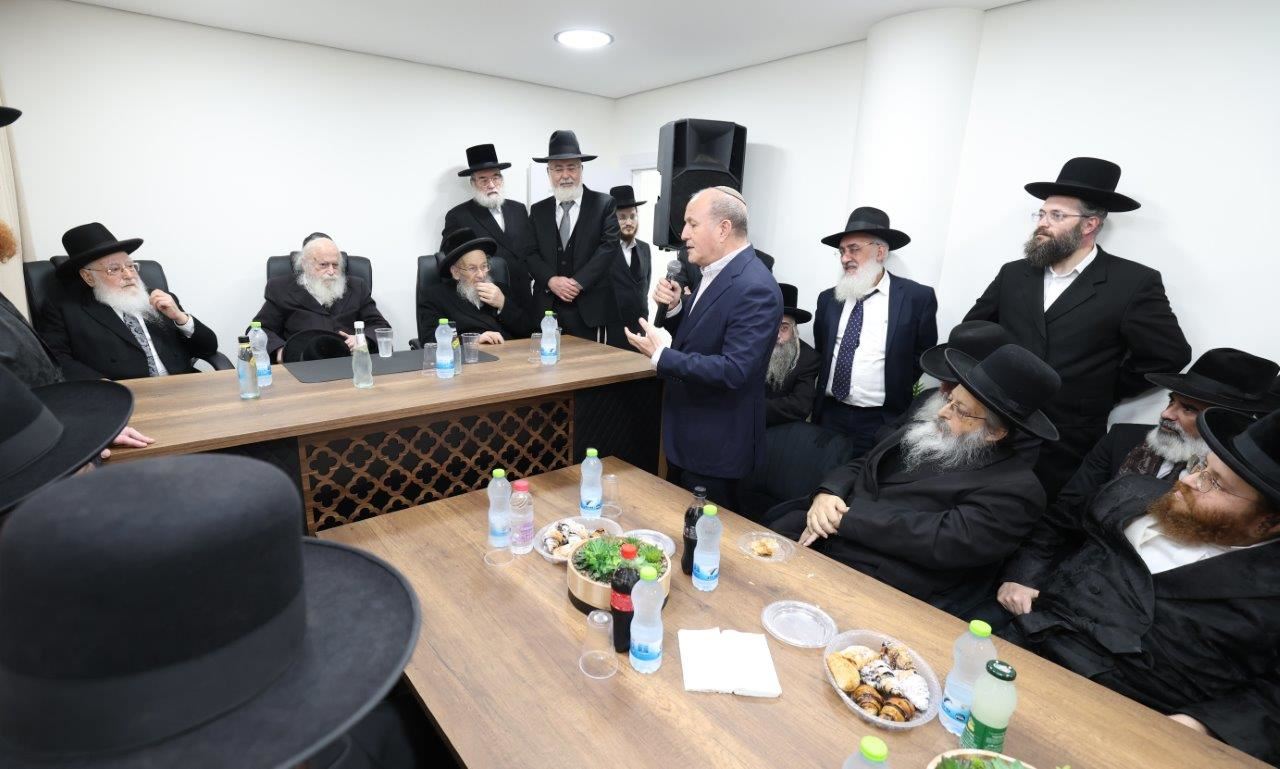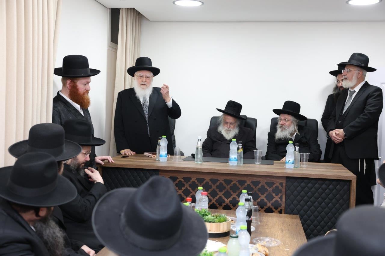 המרא דאתרא הגר"ח פינטו, חברי בד"ץ רבני הקריות הדיינים, מורי ההוראות ואחמי"ם התאספו באולם הרחב שע"י בית הדין שם נשאו דברי ברכה לכבוד המעמד.