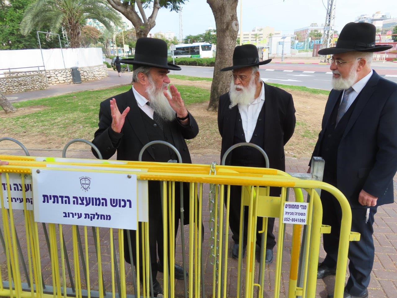 ביום שישי בשעות הבוקר, בצומת הרחובות רבי יוחנן בן זכאי ורבי שמעון בן שטח, יצאו לשטח הגאון רבי מאיר כהן שליט"א נשיא איחוד רבני הקהילות, בעל "אוצר ספרי הלכה" ורב ק"ק הריב"ז, יחד עם הרה"ג ר' חיים קלמנוביץ רב מחלקת העירובין, הרב אורי אייכנטל מפקח עירוב, הרב חיים בן חמו מרבני המועה"ד ונציגי העירוב בקהילת 'נפש החיים' הרב מנחם ליבוביץ, הרב אלעזר שפר, הרב אברהם כהן והרב יעקב ישראל צוקר.